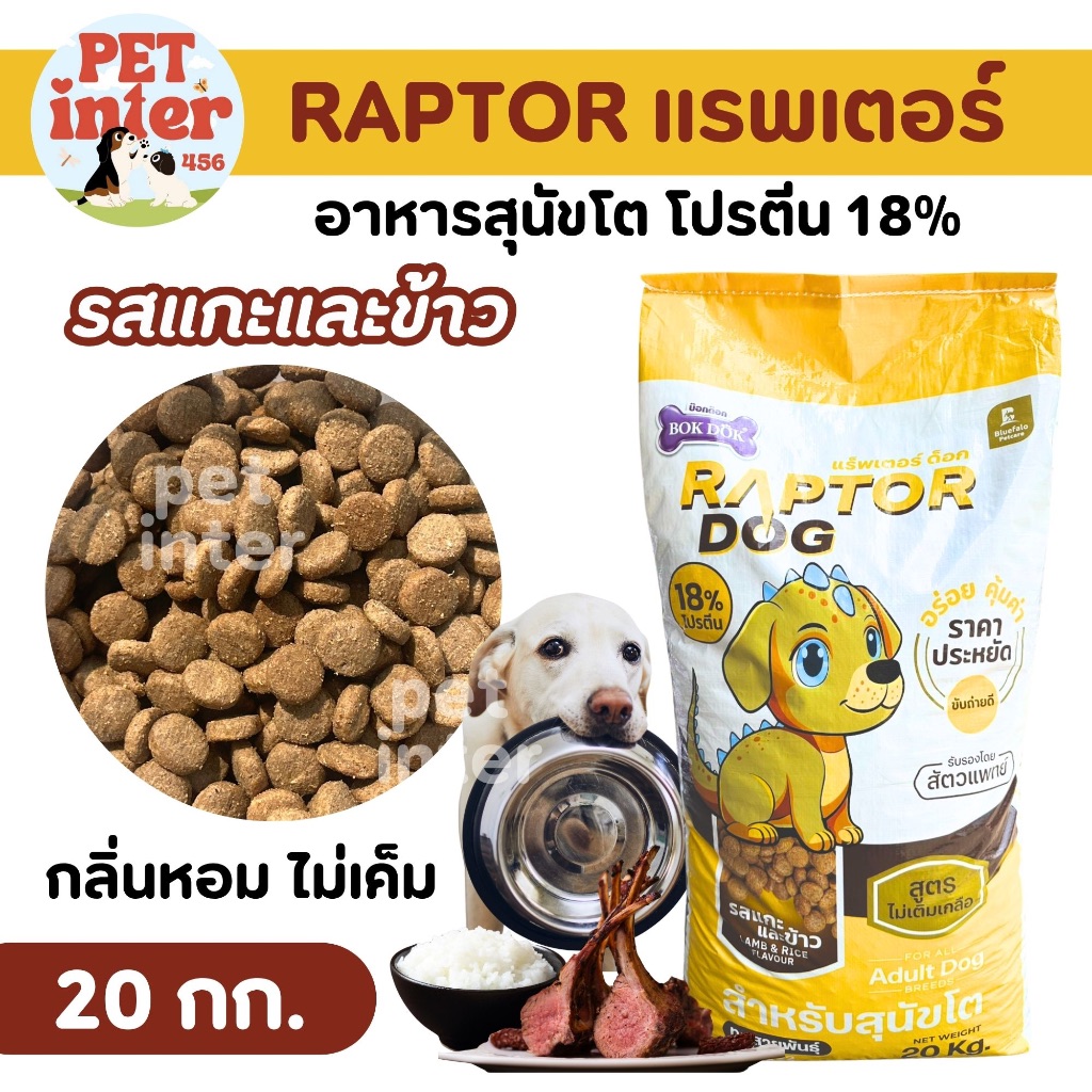 Raptor Dog แรพเตอร์ กระสอบใหญ่ 20 กิโลกรัม อาหารสุนัขรสเนื้อ/รสเนื้อตับ/รสแกะ กลิ่นหอม กรอบ ไม่ใส่สี ไม่เค็ม