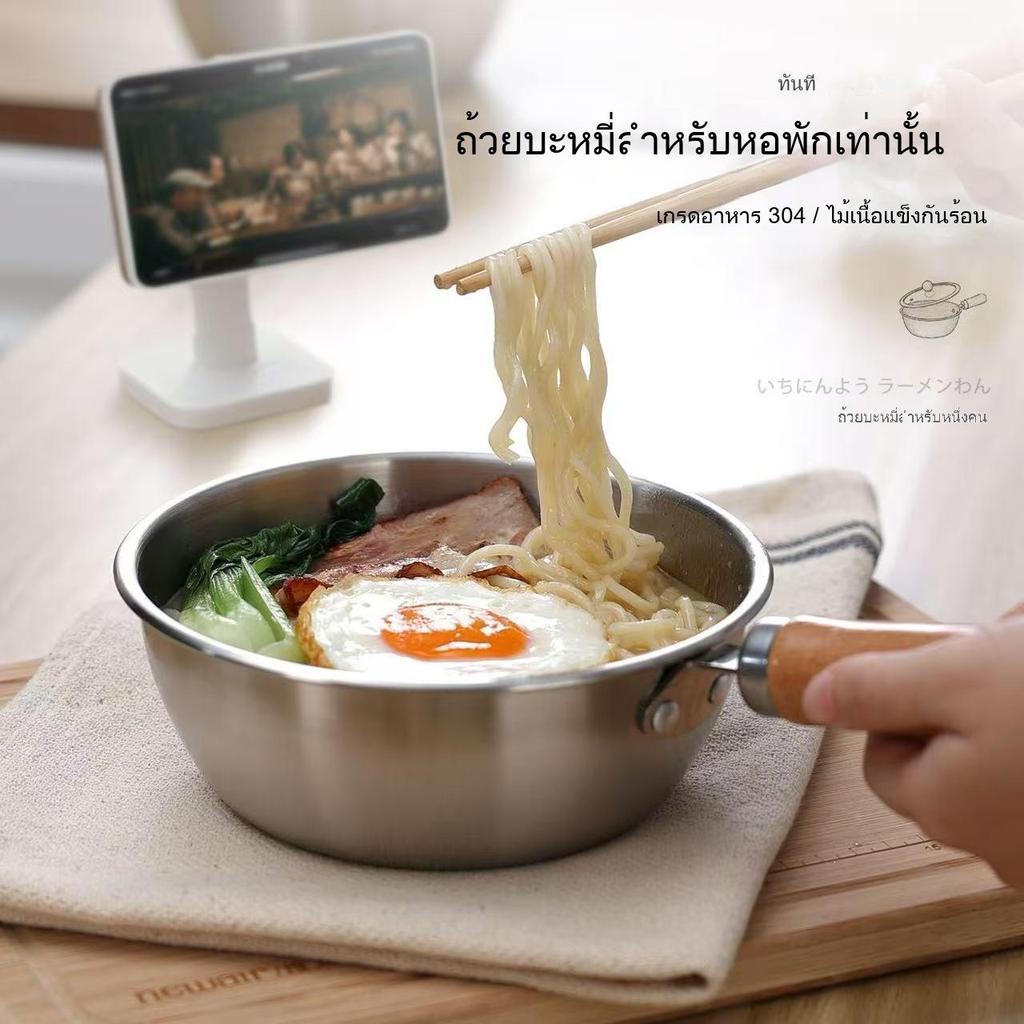 [แถมช้อนฟรี] หม้อสแตนเลส 17 ซม. ด้ามจับไม้หนาพิเศษ ใช้ต้ม ซุป ทอด