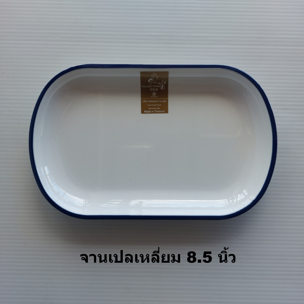 ชามเมลามีนขอบสีน้ำเงินทรงเรทโทรเนื้อหนา หลายแบบหลายขนาด