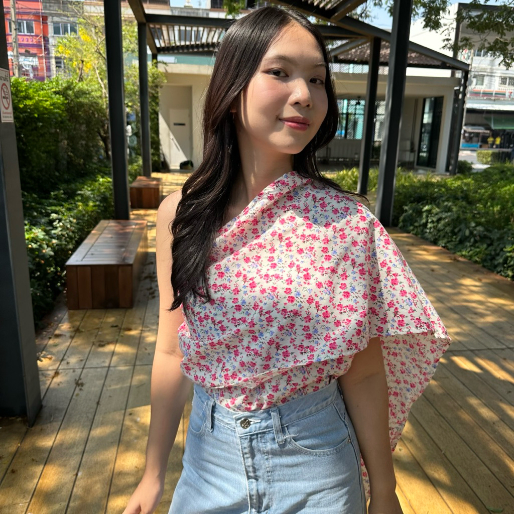 สไบลายดอกชบา เสื้อลายดอกสงกรานต์สวยๆ รอบอกยางยืดใส่ง่าย🌷
