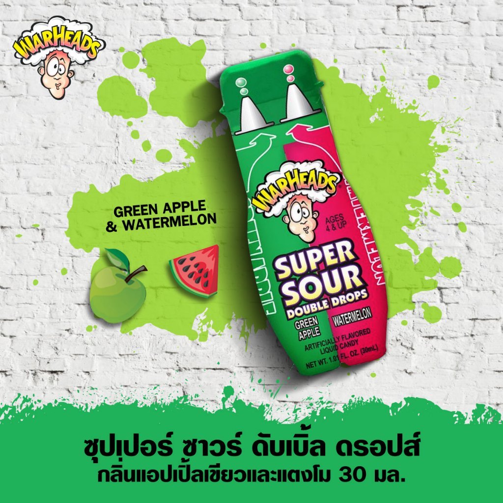 [1แถม1] WARHEADS ซุปเปอร์ ซาวร์ ดับเบิ้ล ดรอปส์ (SUPER SOUR DOUBLE DROPS) แอปเปิ้ลเขียว/แตงโม