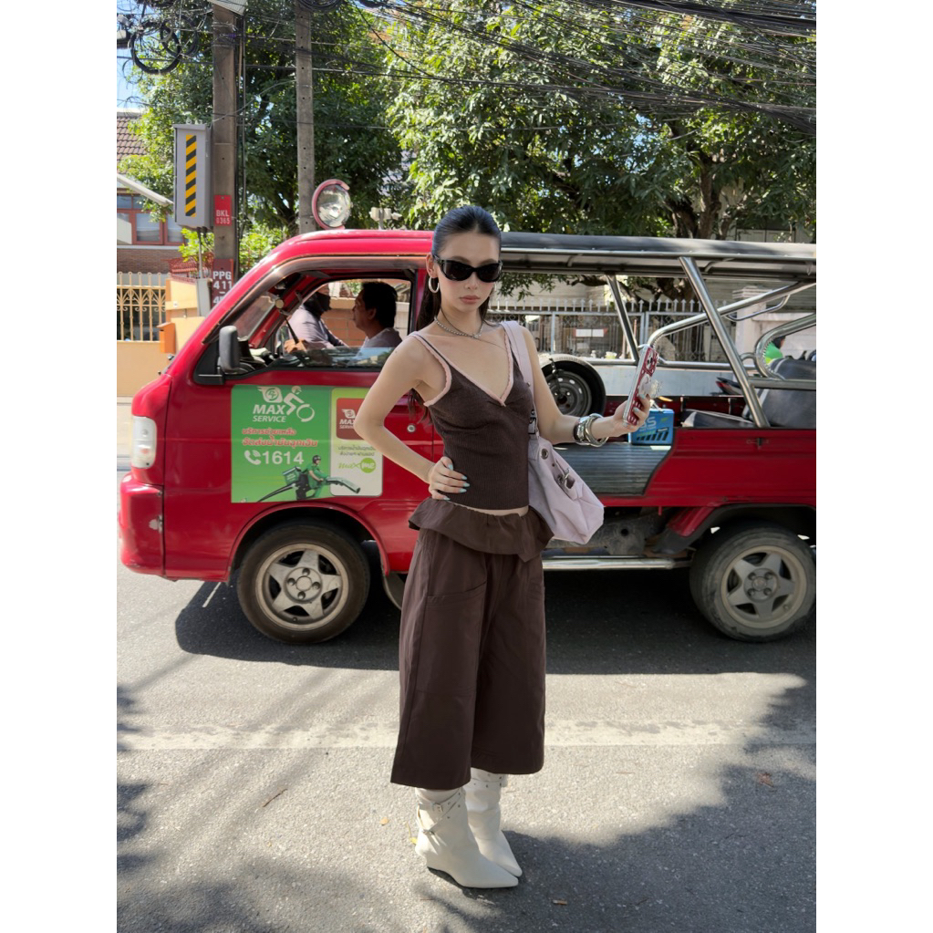 ส่งด่วน 🛵 26M071 MMFISH เสื้อสายเดี่ยวงานผ้านิตถักลายสวย เพิ่มดีเทลขอบสีตัดให้ลุคดูมีมิติ