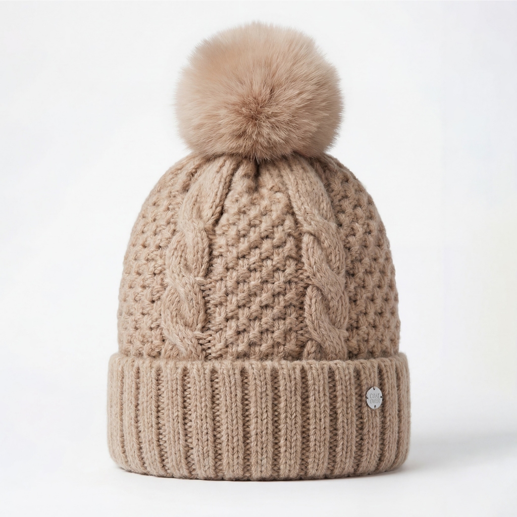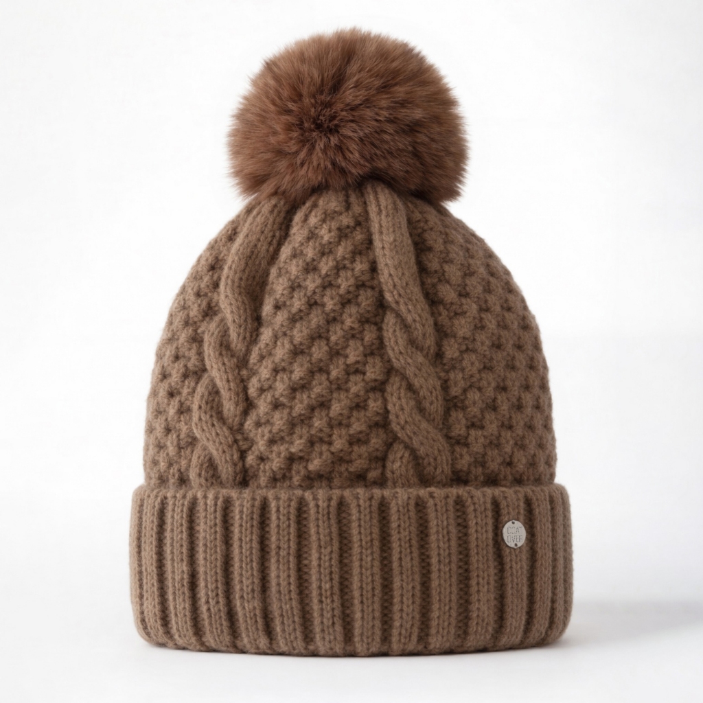 CO1093 COAT OVER Cable Knit Pom Beanie