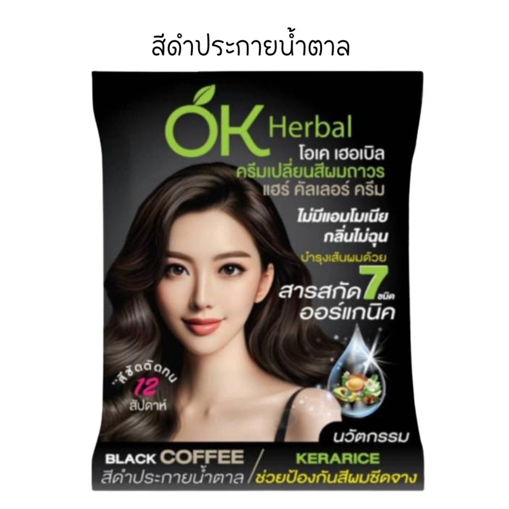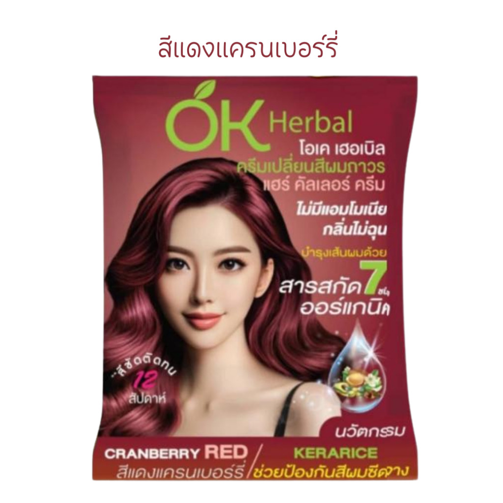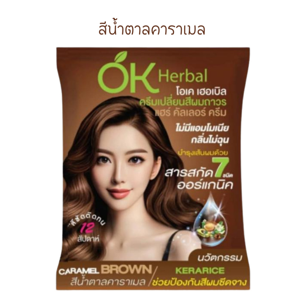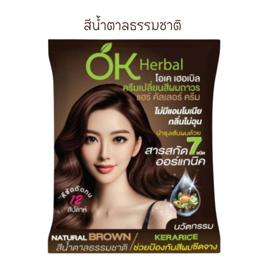 OK Herbal ครีมเปลี่ยนสีผม โอเคเฮอเบิล ไม่มีแอมโมเนีย กลิ่นอ่อนโยน ออร์แกนิค 1 ซอง 60 ml.