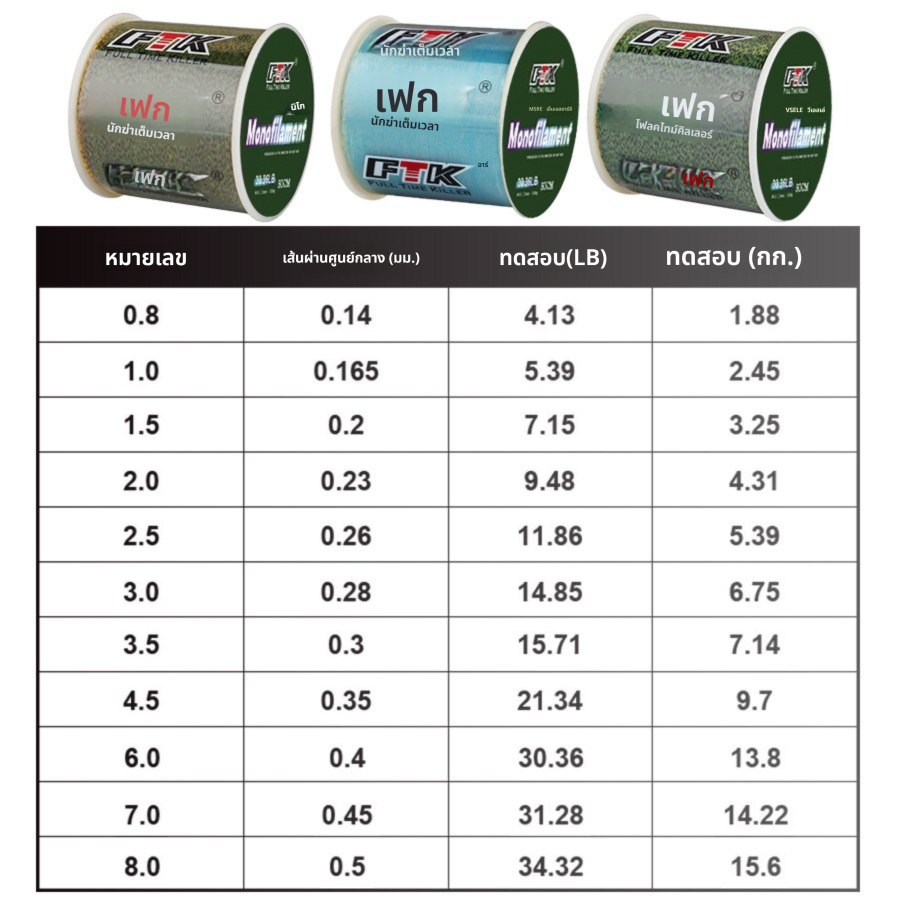 [จัดส่งจากกรุงเทพฯ] FTK Ocean Grade สายตกปลาไนลอนลายพราง 500 เมตร ทนทาน