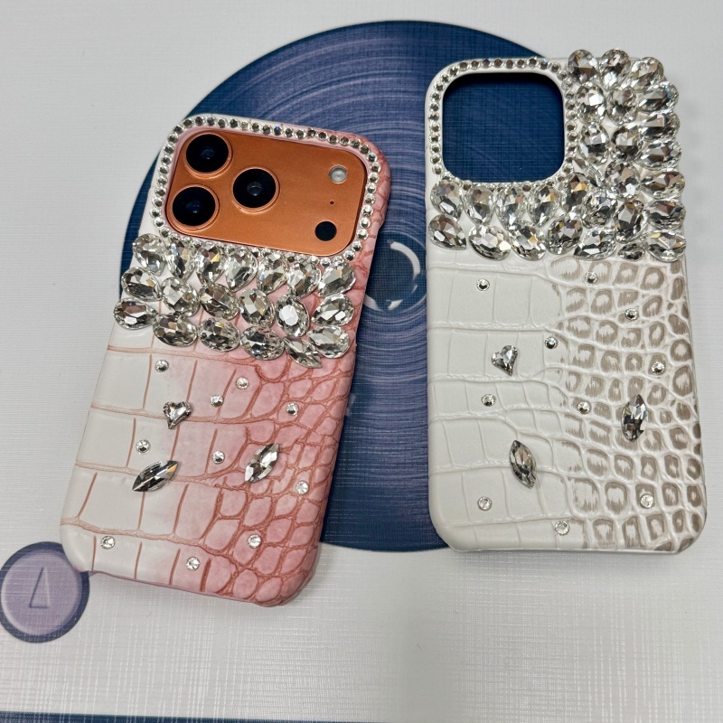 Handmade Silver Diamonds หนังจระเข้เคสโทรศัพท์สําหรับ iPhone17 Air 16Promax 14Plus 15Pro 13 12 11 ครึ่งครอบคลุม