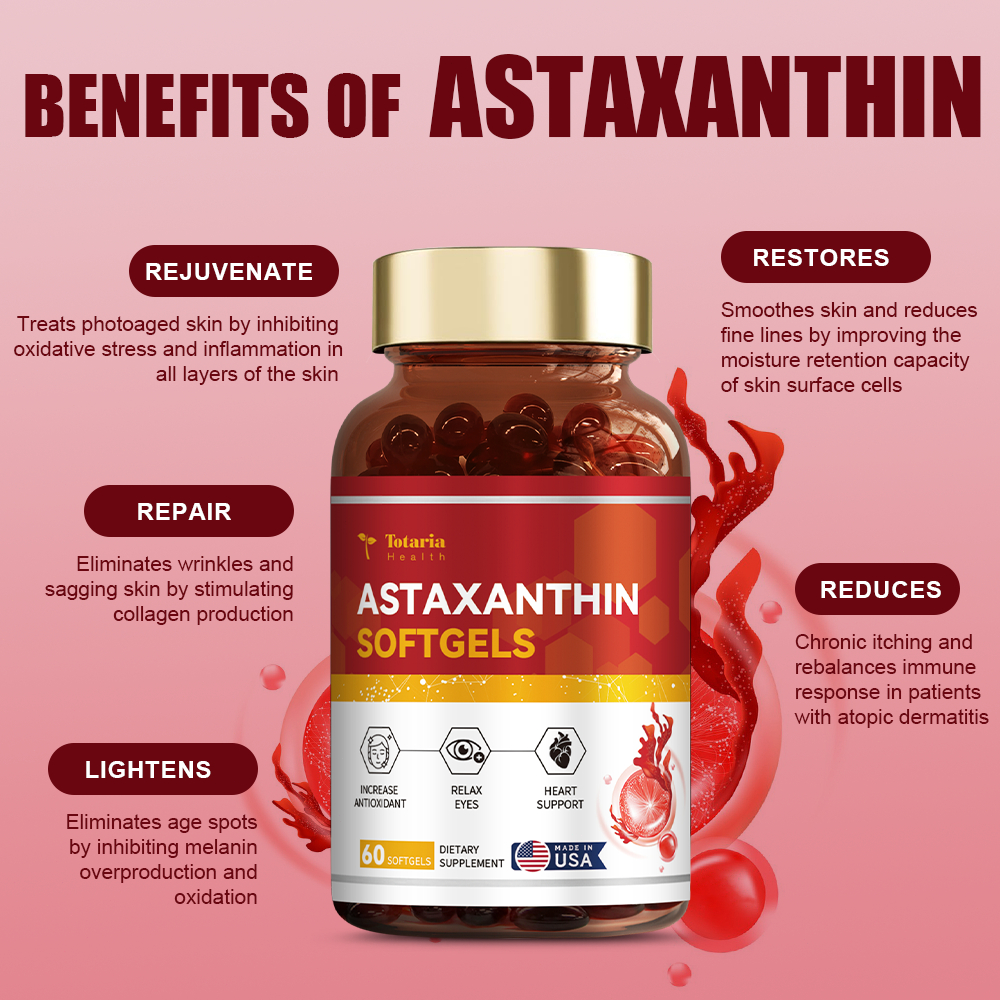 Totaria Natural Astaxanthin 12 มก. พร้อม Lutein, Zeaxanthin, CoQ10 & Omega-3 Triple Strength | Advanced Antioxidant Support for Eyes, Skin, Brain & Heart Health - Vegan 120s