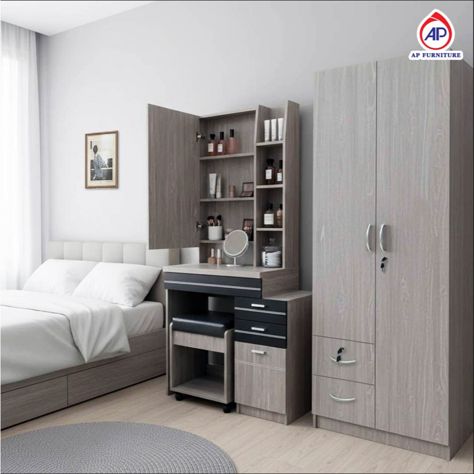 AP โต๊ะเครื่องแป้ง 80 ซม.พร้อมเก้าอี้สตูลมีล้อเลื่อน รุ่น DT-815 กระจกเปิดเก็บของได้ (ไม่รวมประกอบ)