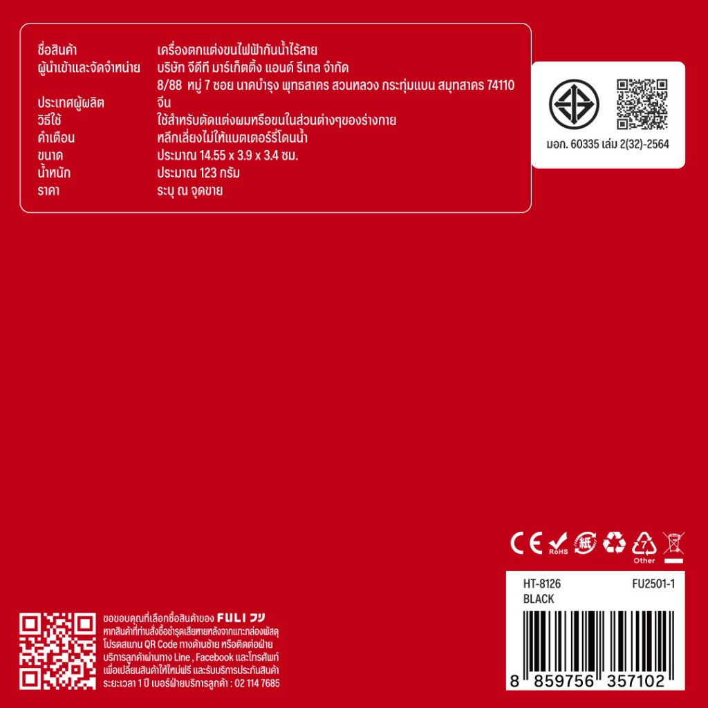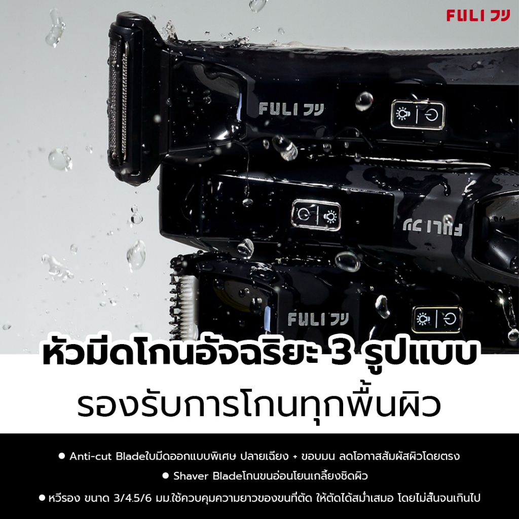 FULI เครื่องตกแต่งขนไฟฟ้ากันน้ำไร้สาย | Wireless Waterproof Hair Trimmer