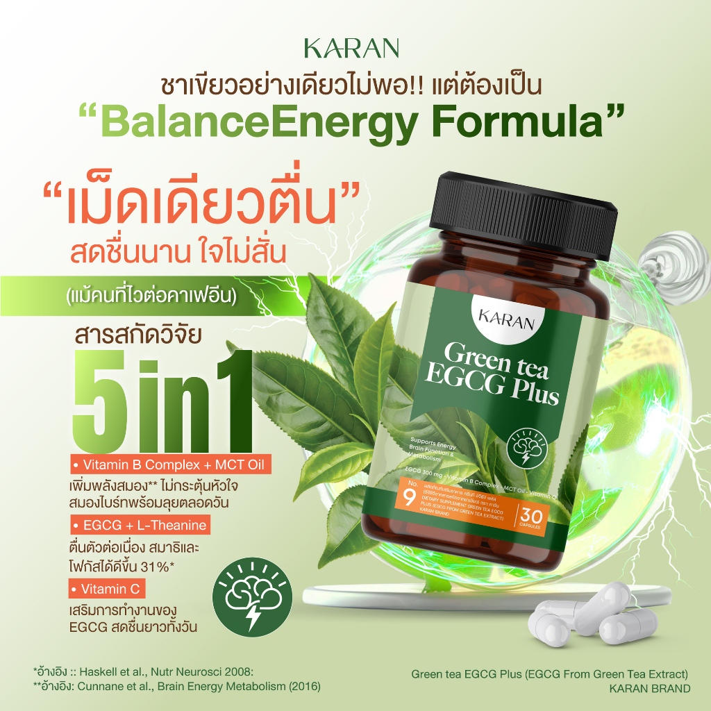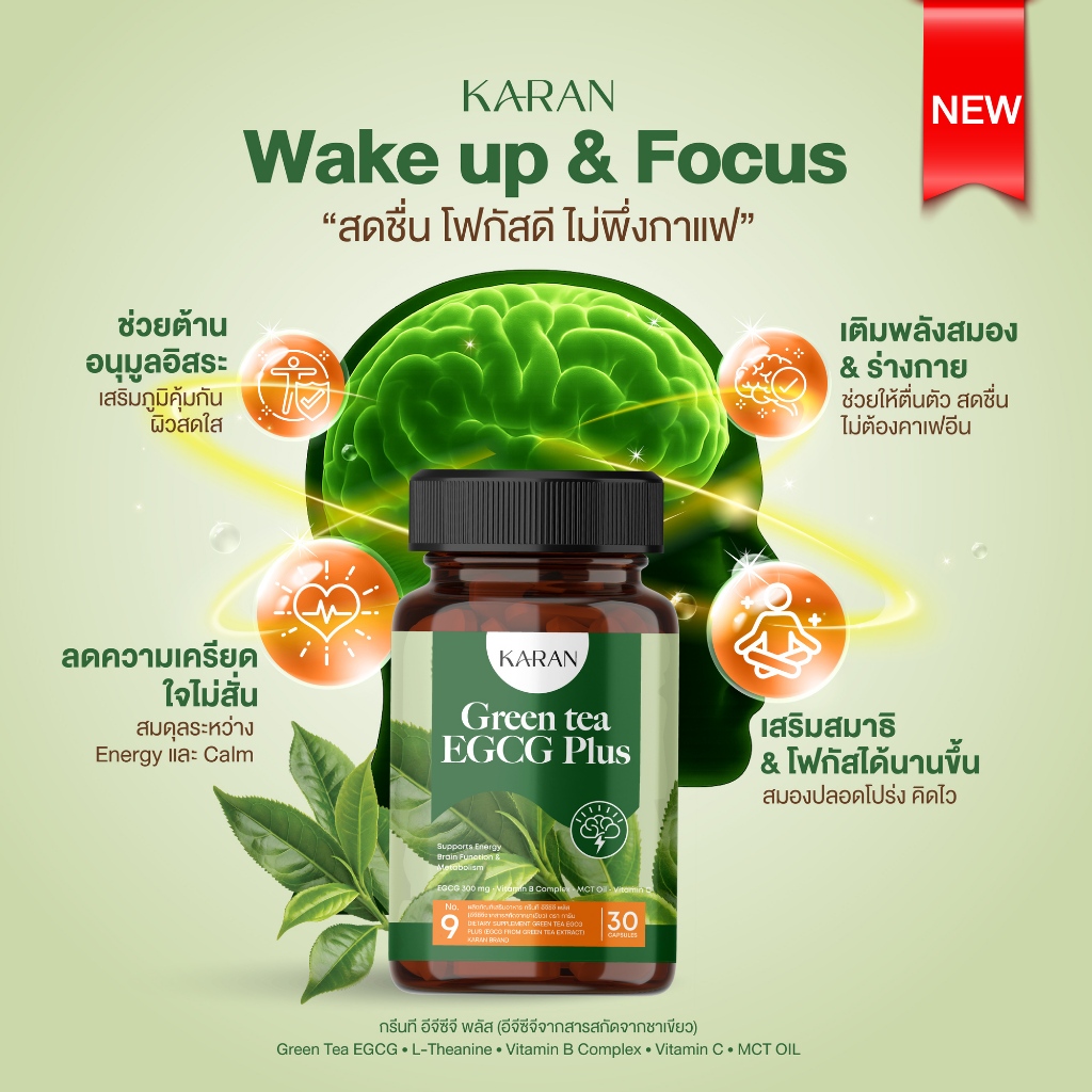 KARAN Greentea EGCGเข้มข้นสูง 280mg ตื่นตัวทันที สดชื่นโฟสกัสยาว ลดเหนื่อย ใจไม่สั่น 30เม็ด