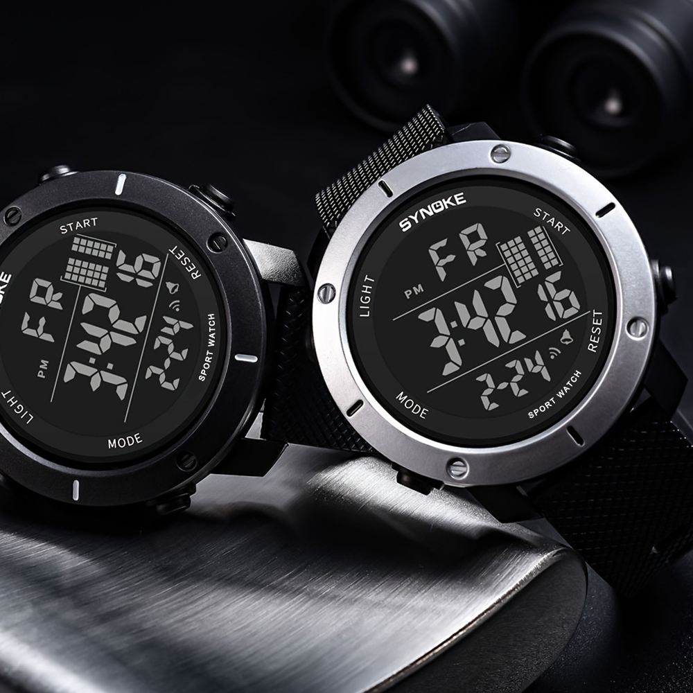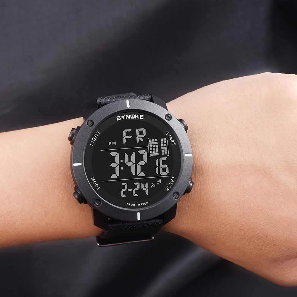 นาฬิกาผู้ชาย SYNOKE: นาฬิกากีฬาแบบทหาร กันน้ํา พร้อมไฟ LED และปลุก