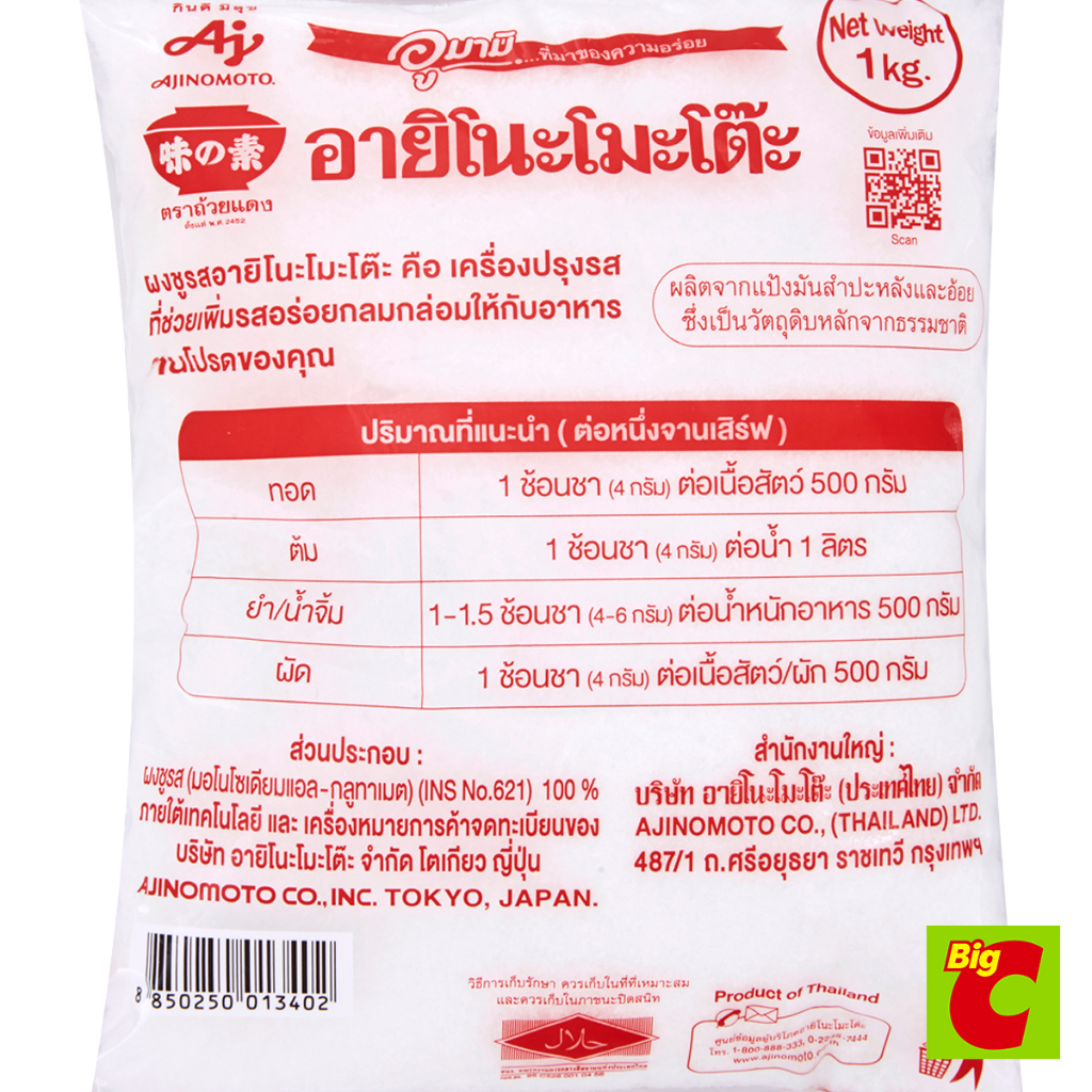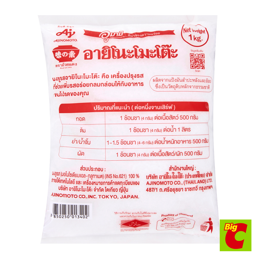อายิโนะโมะโต๊ะ ผงชูรสแท้ เอ็มเอสจี 1 กก.
