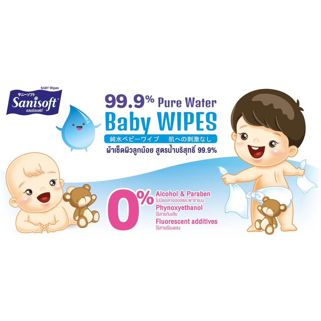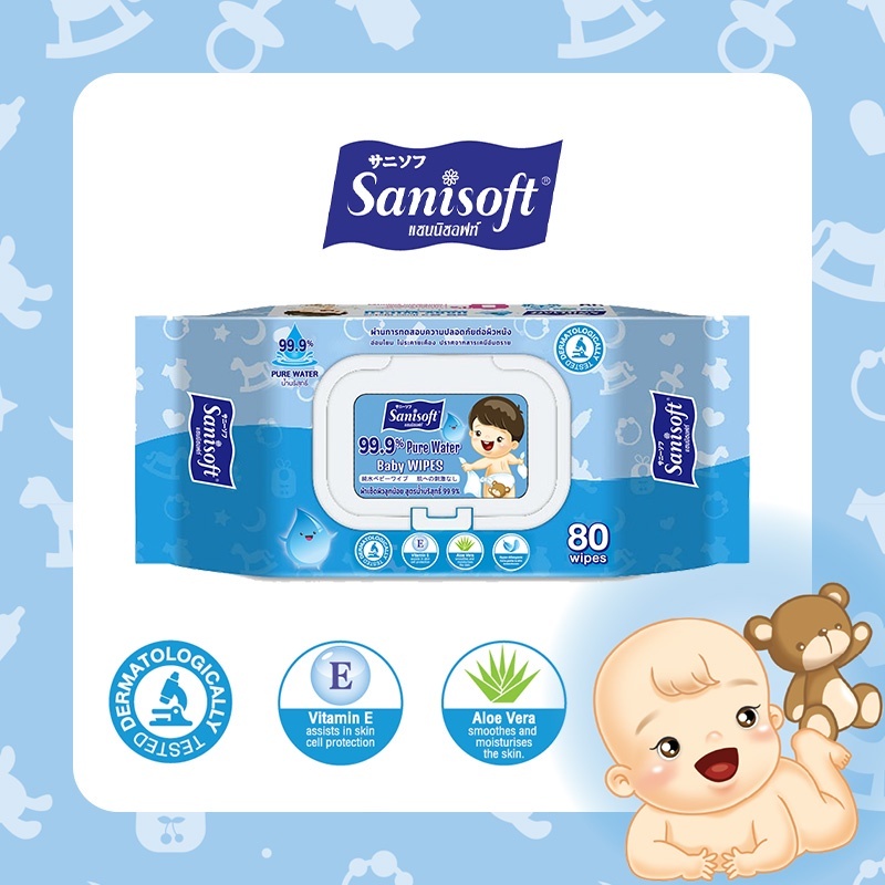Sanisoft Baby Wipes 99.9% Pure Water 80s / แซนนิซอฟท์ ผ้าเช็ดผิวลูกน้อย สูตรน้ำบริสุทธิ์ 99.9% 80แผ่น/ห่อ