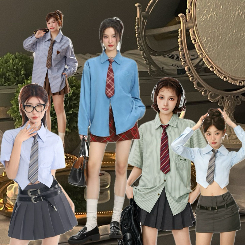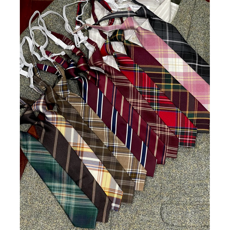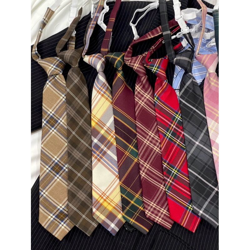 MORA | (แบบสั้น) พร้อมส่ง 🍒 เนคไทสำเร็จรูปลายสก็อต/เนคไทลายทาง necktie (แบบสำเร็จรูป/สวมคอ)