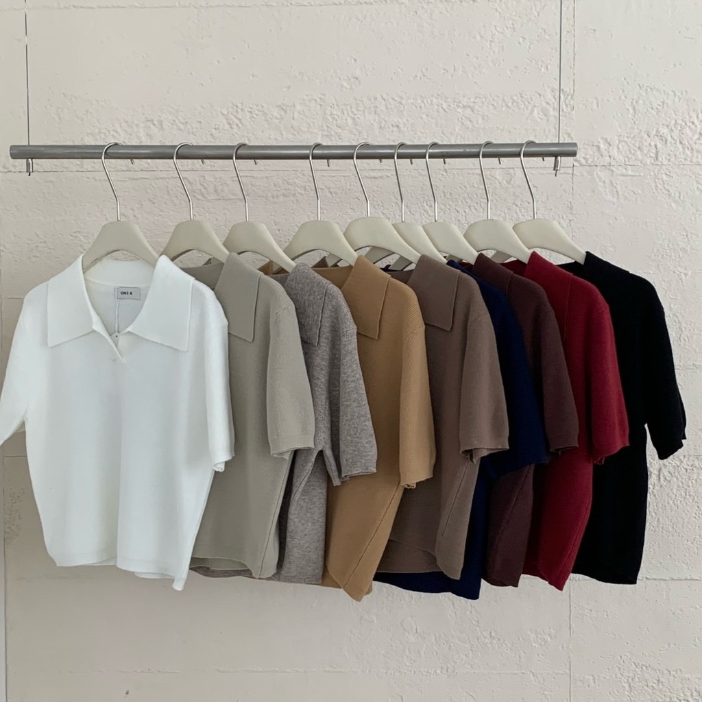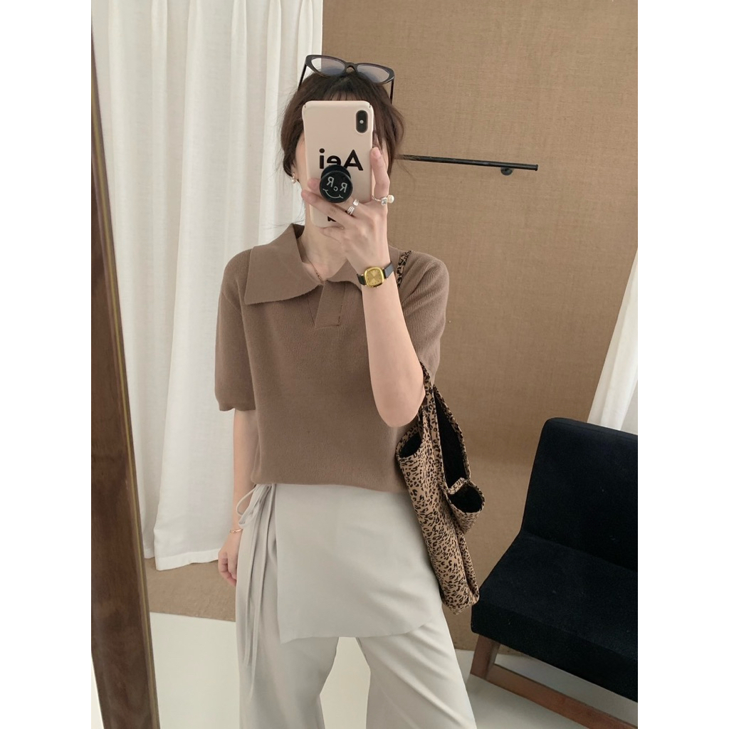 [ป้าย One K] เสื้อไหมพรมแขนสั้นคอปก เสื้อถักผู้หญิง เสื้อทำงาน มินิมอล ใส่สบาย ใส่เที่ยว เสื้อสุภาพ