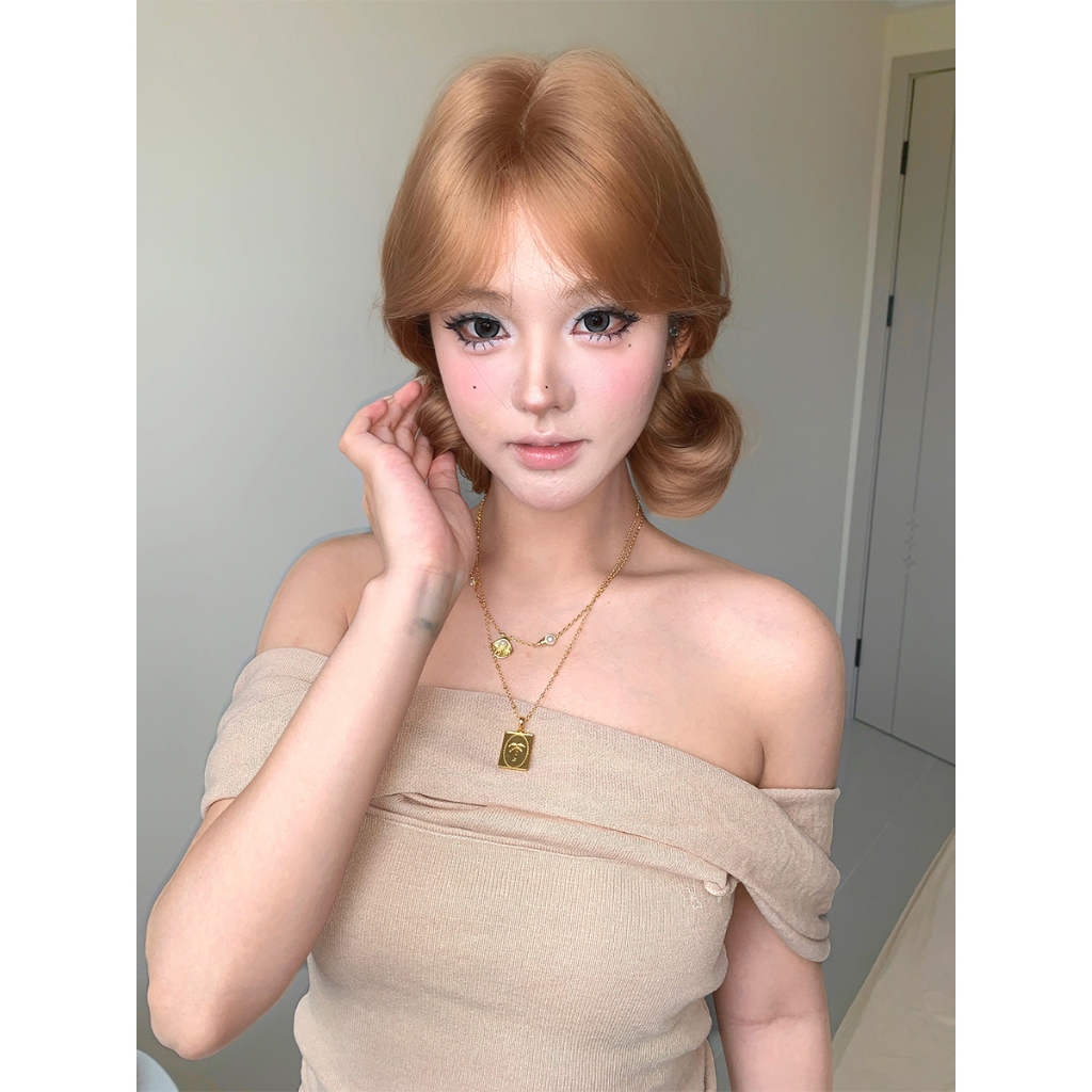 GDS Wigs วิกผมกึ่งทอมือลอนสีชานม ไม่มีหน้าม้า (ยาว 65 cm) *รุ่นที่ 5 นวัตกรรมใหม่ล่าสุด*
