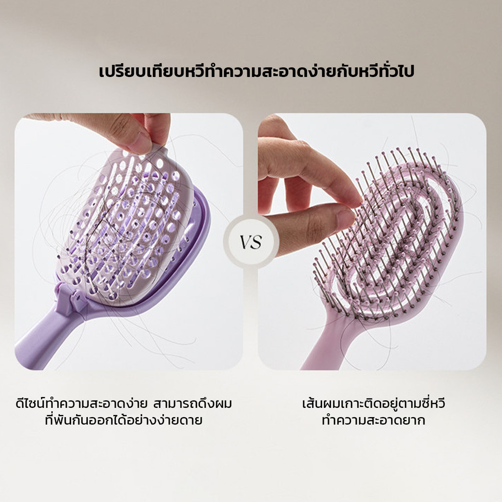 Foldable Detangling Comb หวีซี่ห่าง พับเก็บได้ สำหรับพกพา หวีผมเปียกและแห้ง หวีดีไซน์2ชั้น ดึงผมออกจากหวีได้