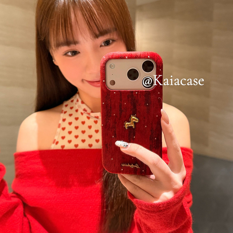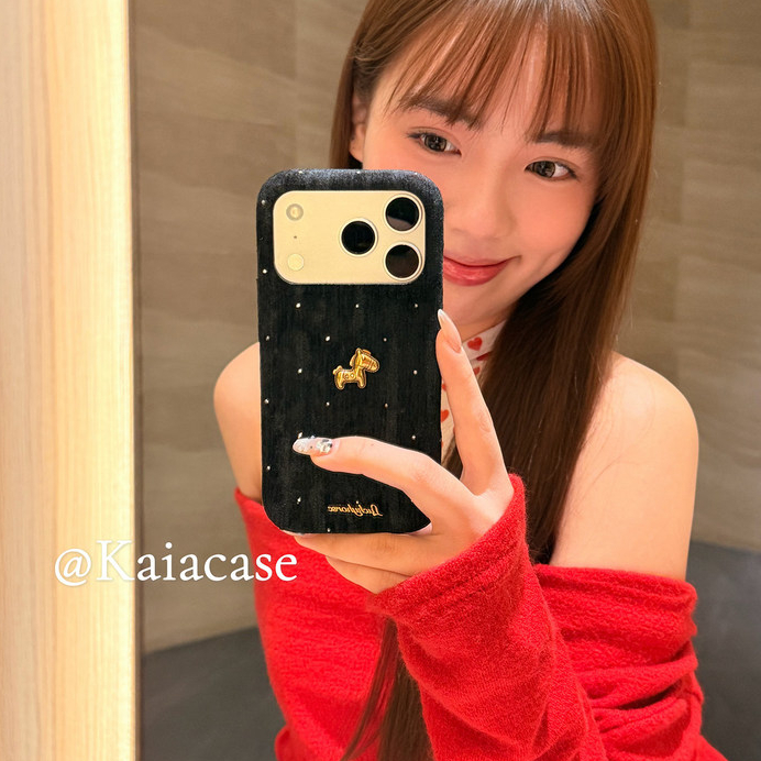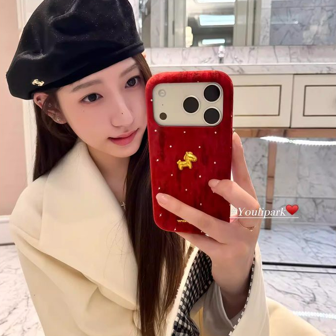 เกาหลี 3D รับ Rich Gold Horse Wave Point Flannel ผ้าเคสโทรศัพท์สําหรับ iPhone 17Promax 17Pro 13 14 15 16 Pro Max กันกระแทกหวาน Girly ฝาครอบมือถือปลอก