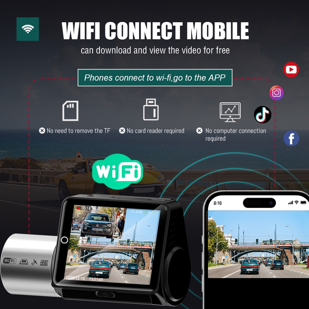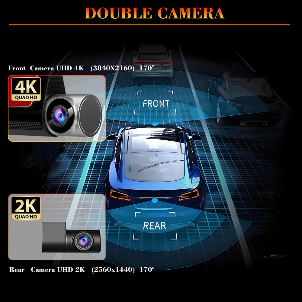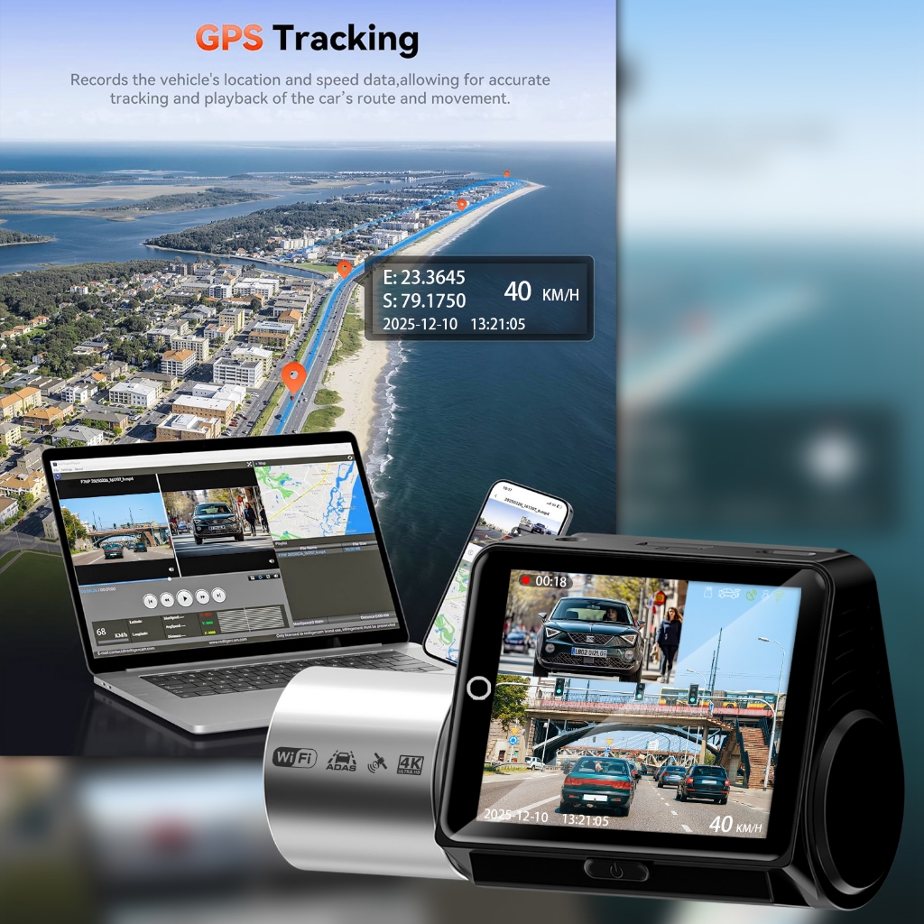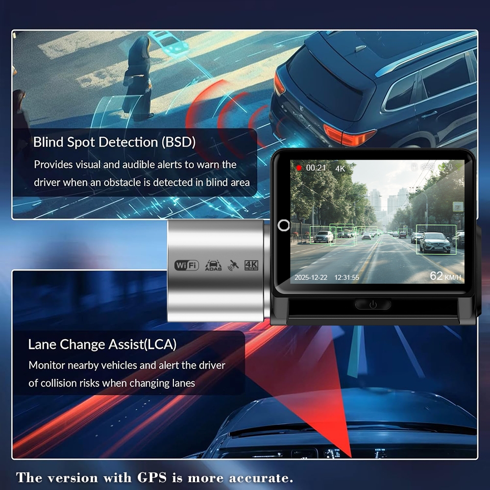 2.45 นิ้ว 4K Wifi GPS หน้าจอสัมผัส Dash Cam พร้อม ADAS BSD 2K Dual เลนส์รถกล้องย้อนกลับภาพที่จอดรถการตรวจสอบ night vision
