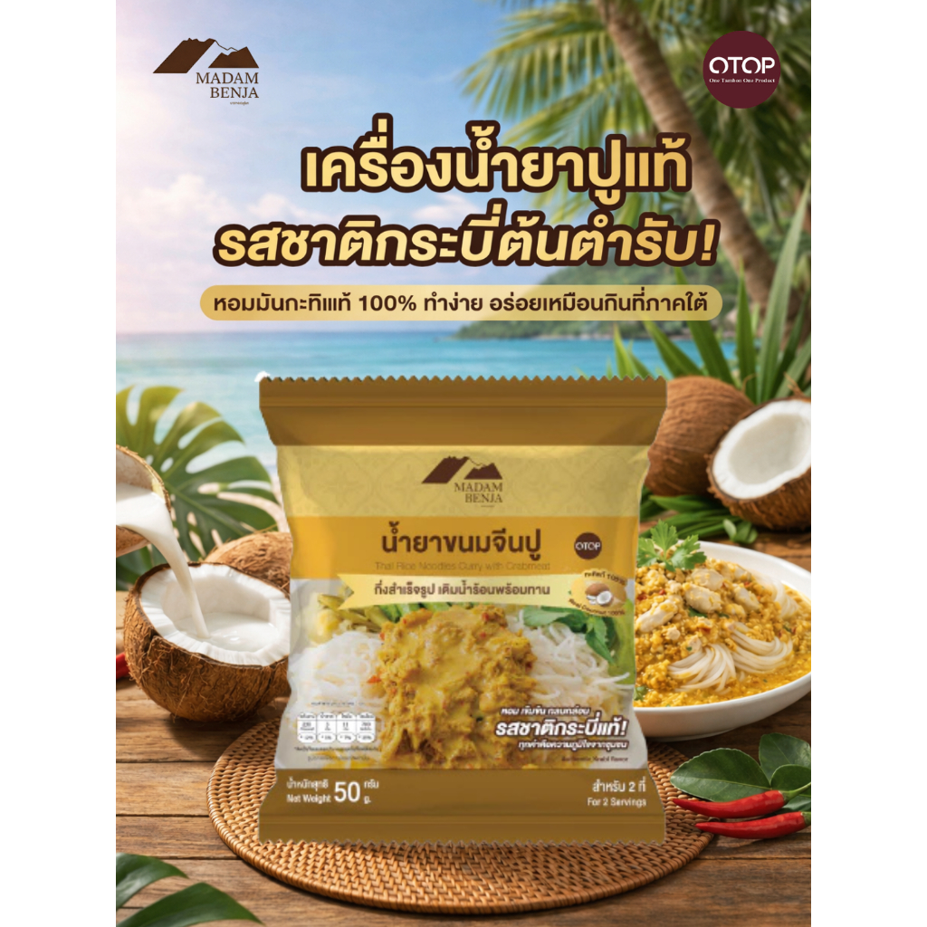 น้ำยาขนมจีนปูผง มาดามเบญจา สูตรแกงใต้แท้ (ไม่ต้องใช้กะทิ) ไม่ใส่สารกันบูด 3 ซอง