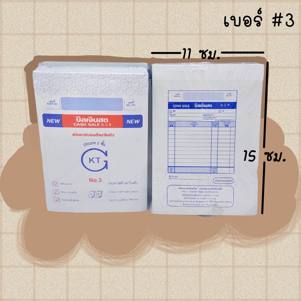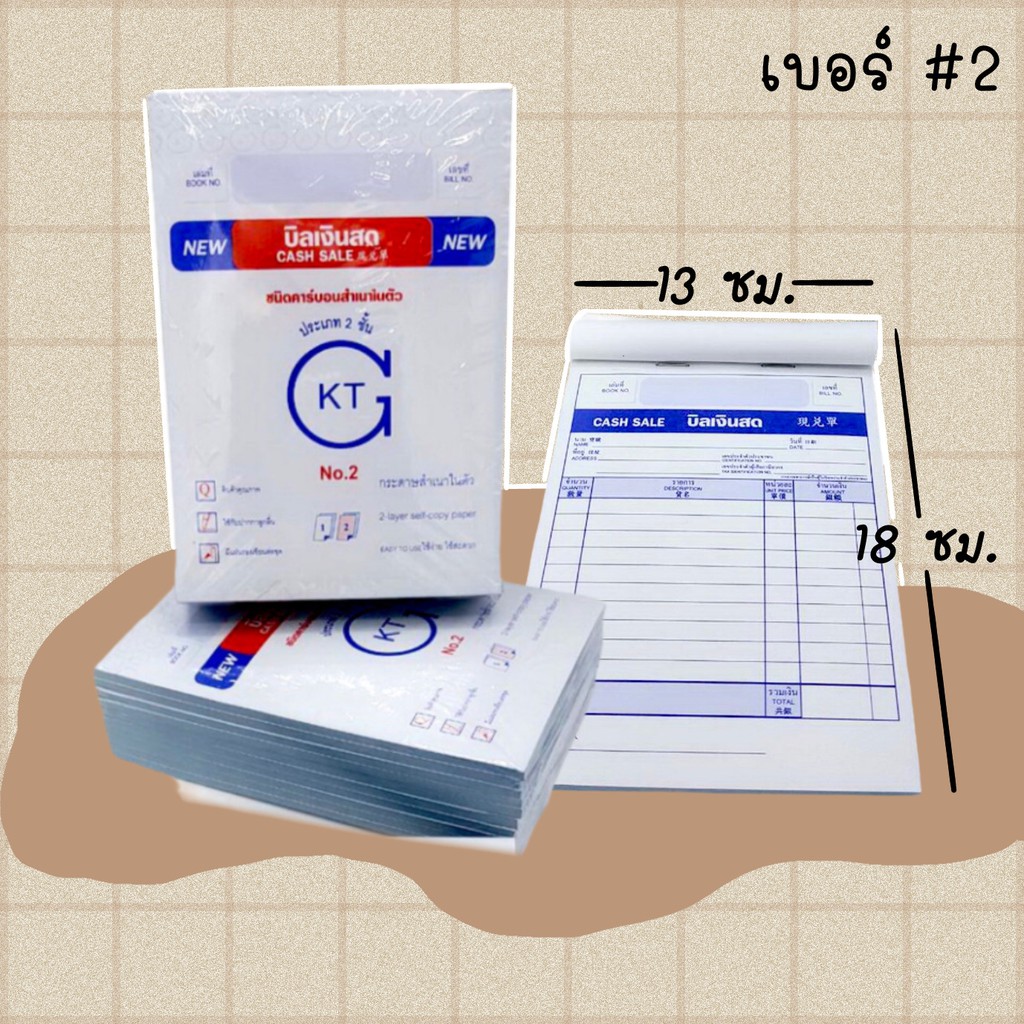 บิลเงินสด 2 ชั้น มีคาร์บอนในตัว KTG แพ็คละ 10 เล่ม เบอร์1 2 3 ใบเสร็จ บิลส่งของ ใบส่งของ(KTG-C)