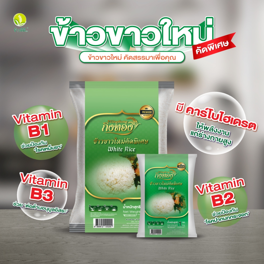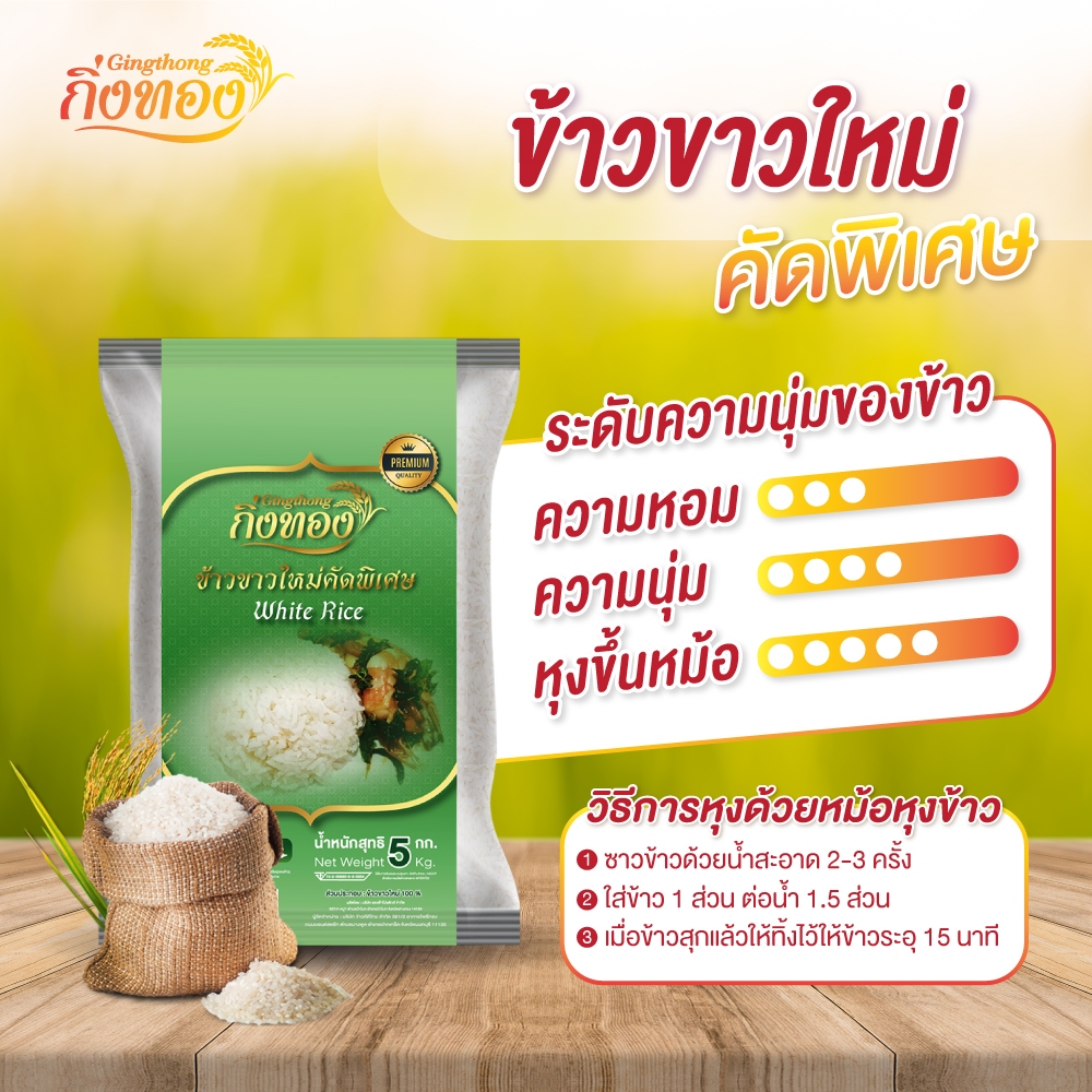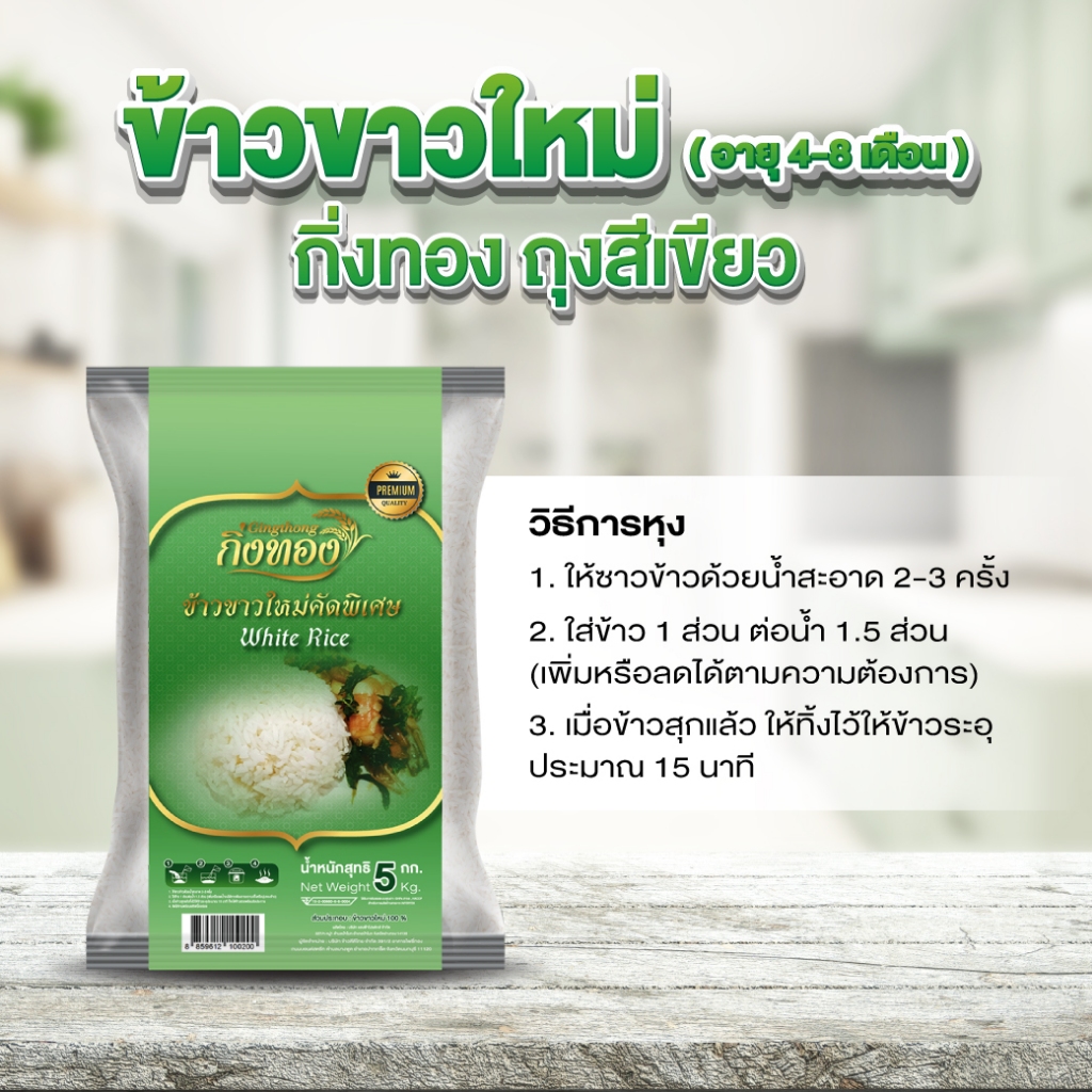 ข้าวขาวใหม่ (ถุงเขียว) - ตรากิ่งทอง ขนาด 5 กิโลกรัม