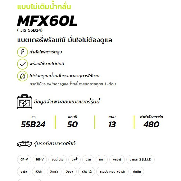 ส่งด่วน GS MFX-60L /R (50Ah) 55B24 แบตรถยนต์ Vios Altis Civic Mazda กึ่งแห้ง แท้ พร้อมใช้ MFX60