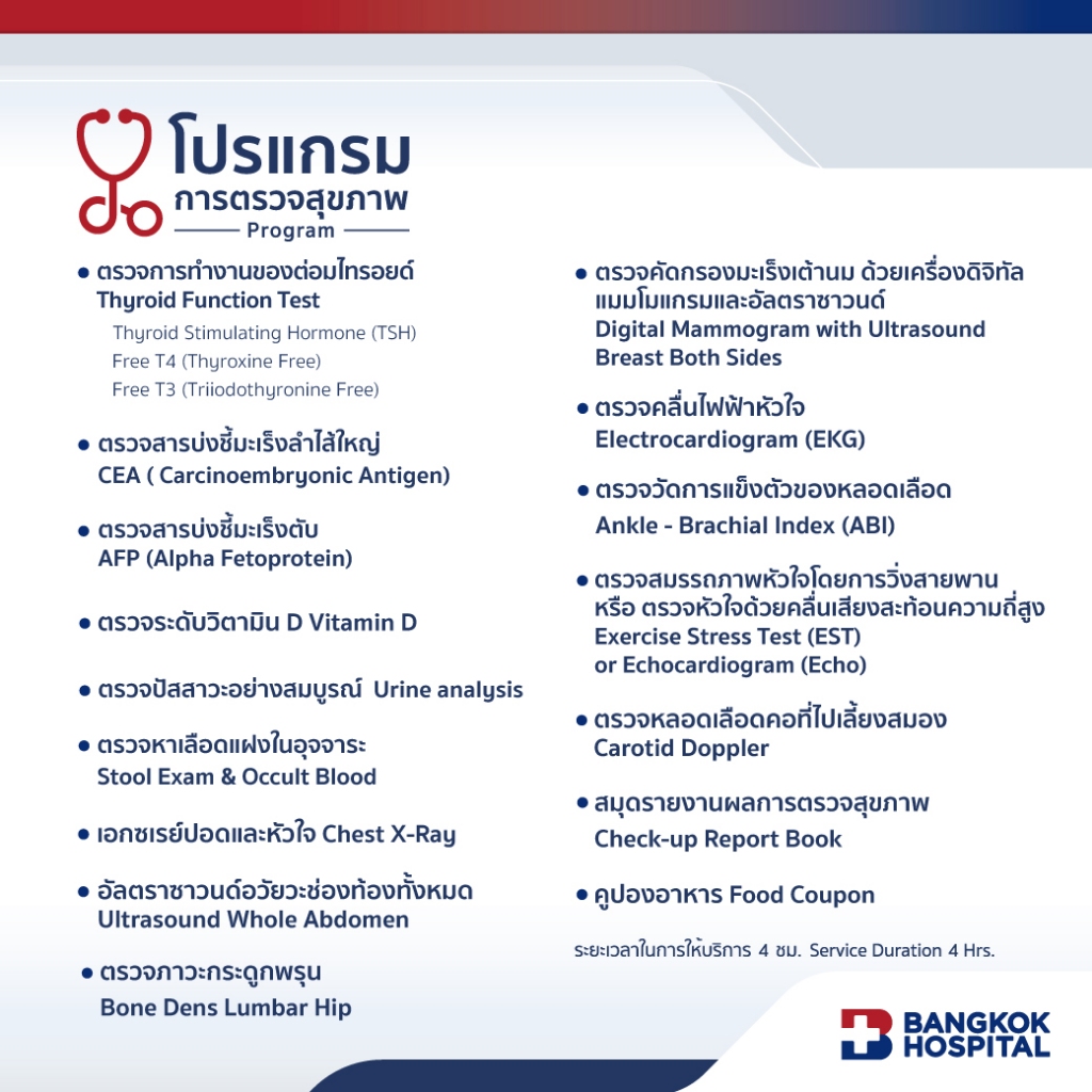 ชุดตรวจสุขภาพ Signature Female Check-up สำหรับอายุ 50 ปีขึ้นไป หญิง - Bangkok Hospital [E-Coupon]