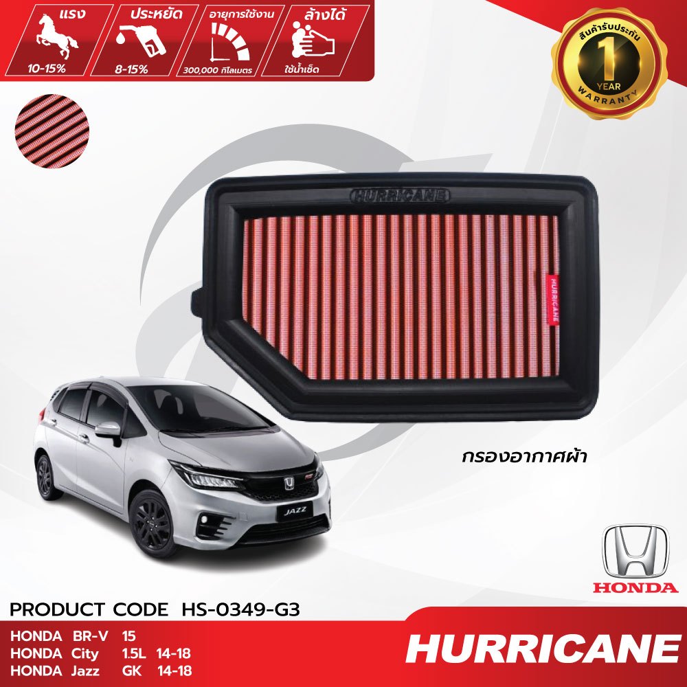 HURRICANE กรองอากาศรถยนต์ผ้าแดง & สแตนเลส Honda ( BR-V , City , Jazz ) HS-0349