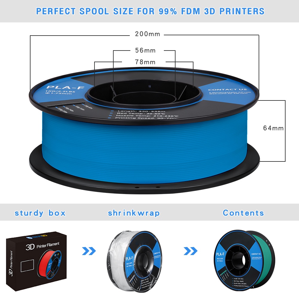 BiNG3D วัสดุการพิมพ์ 3D Filament PLA+ เส้นใยพลาสติก ใช้กับเครื่องพิมพ์ 3 มิติ 1.75mm 1kg (Blue)