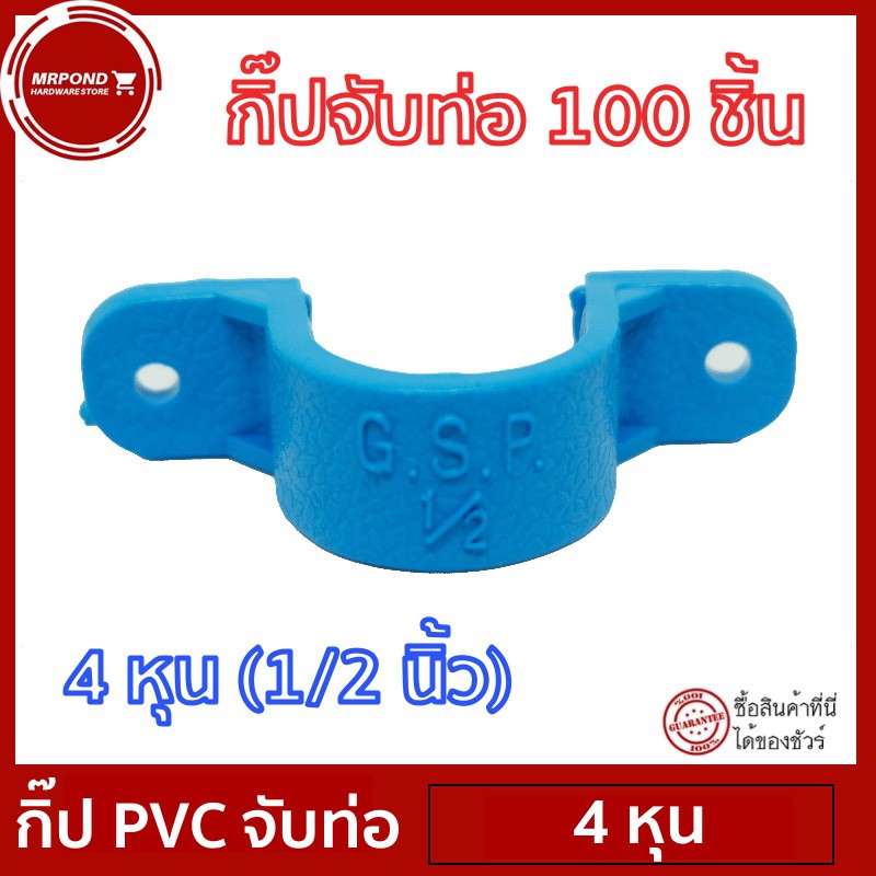 แค้มป์ แค้มปรัดท่อ กิ๊ปPVC กิ๊ปจับท่อ แค้มป์จับท่อ ขนาด 4 หุน (1/2 นิ้ว) จำนวน 100 ตัว