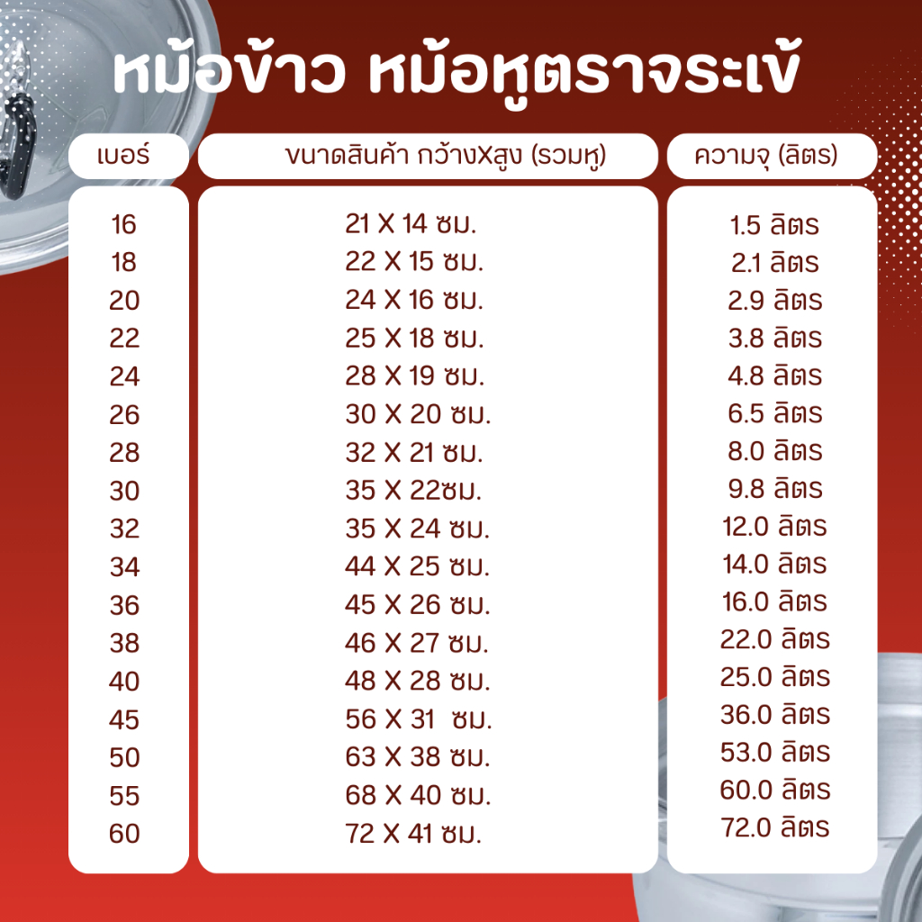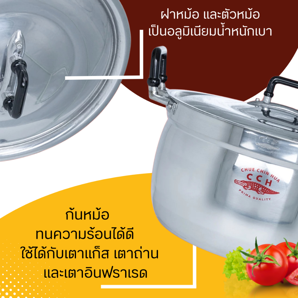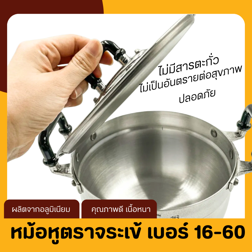 หม้อข้าว อลูมิเนียม ตราจระเข้ (เบอร์ 16-34 ซม.) หม้อ หม้ออลูมิเนียม 2 หู แข็งแรงทนทานนาน 10 ปี