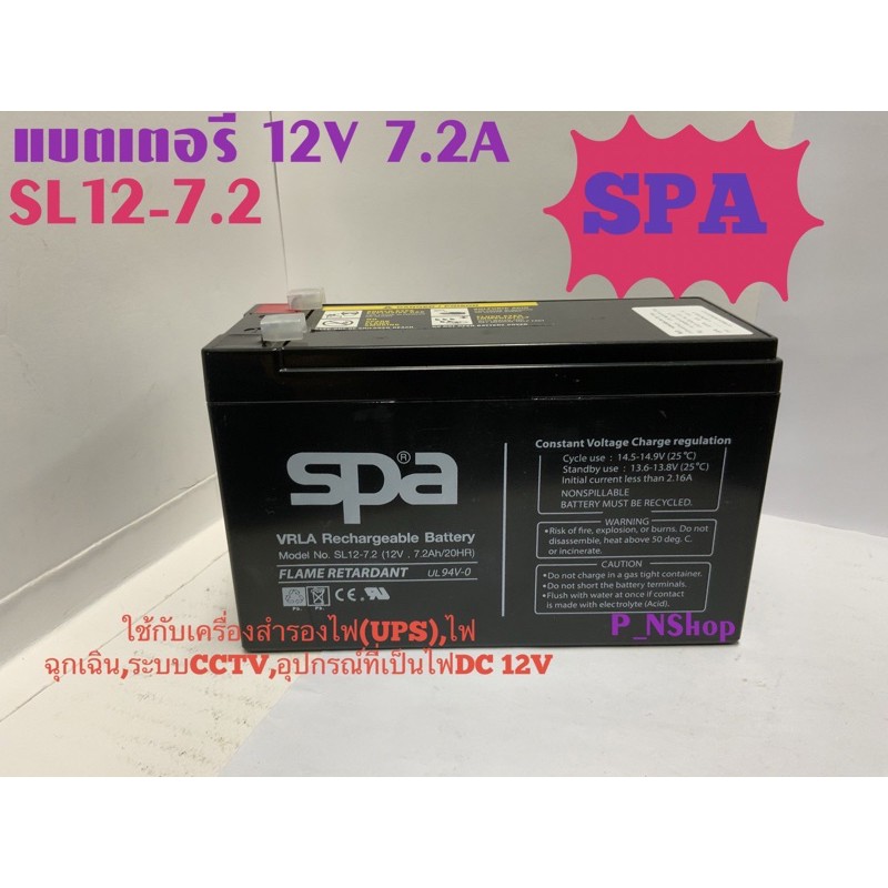 SPAแบตเตอรี่ 12V7.2A รุ่น SL12-7.2 ขนาด(W6.5xL15.1xH10.1CM)แบตUPS,ไฟฉุกเฉิน
