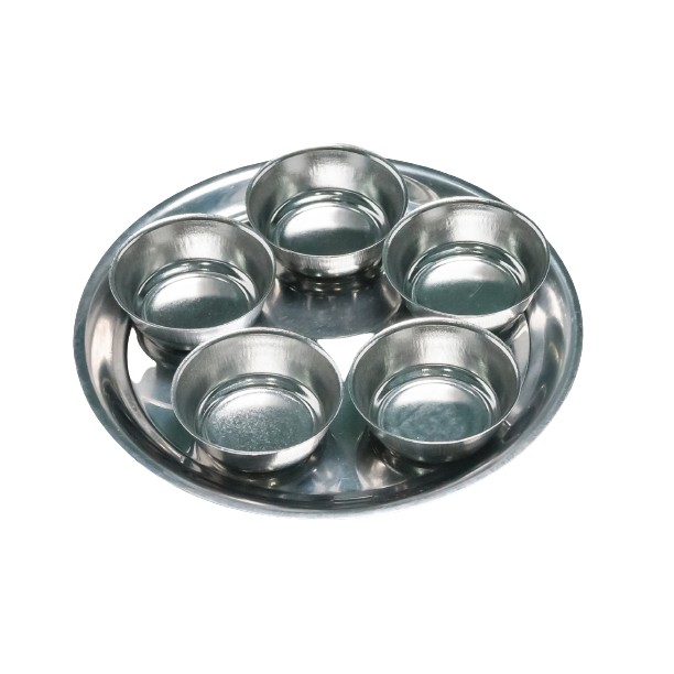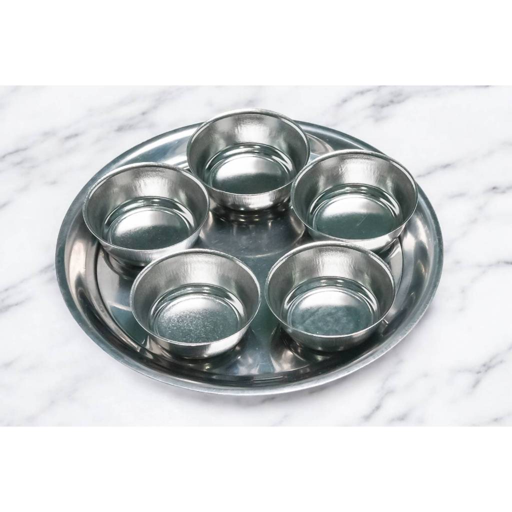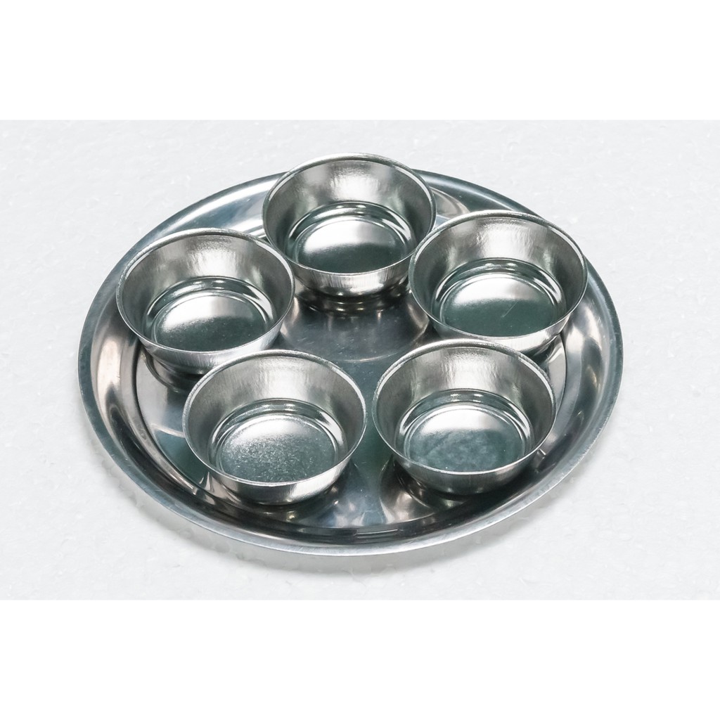 ชุดข้าวพระ SL 5 ใบ ชุดถวายข้าวพระสเตนเลส ชุดจานถวายข้าวเจ้าที่ #เตี่ยจูเอี๊ยะ#ขนาดถ้วย4CM