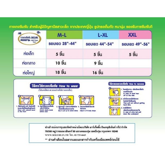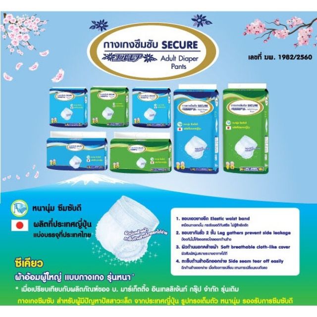 (ยกลัง) SEKURE กางเกงซึมซับ ซีเคียว Size M-L (4ห่อ) / L-XL (4ห่อ) / XXL (6ห่อ)
