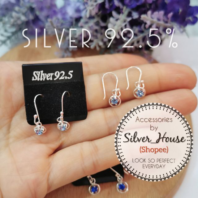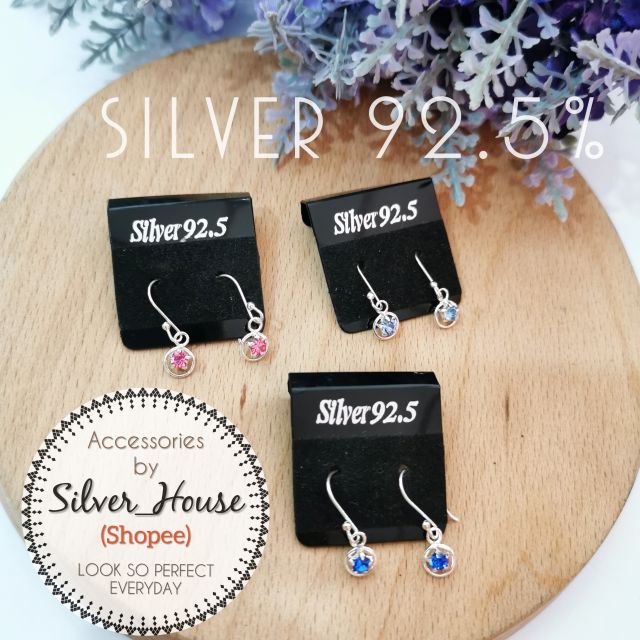 ต่างหูเงินแท้ 92.5% แบบตะขอ ห้อยเพชรczรูปดาวในวงกลม น่ารักมาก