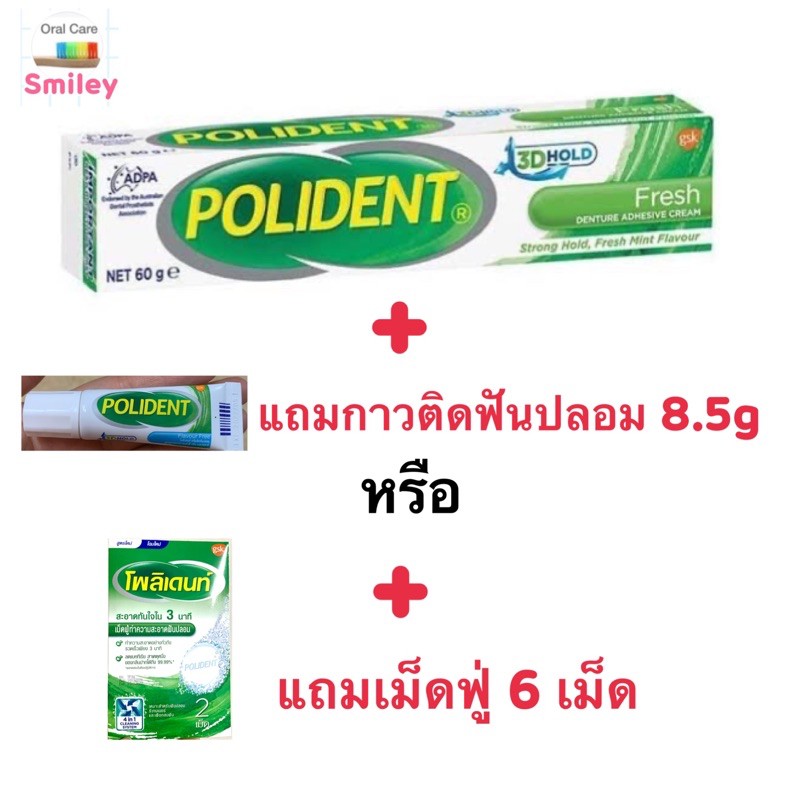 ซื้อ 1 บาท ลูกค้าใหม่ ฉลากไทย แท้100%กาวติดฟันปลอม ครีมติดฟันปลอม polident โพลิเด้นท์ 60g, 20gติดฟันปลอมให้แน่น ไม่หลุด