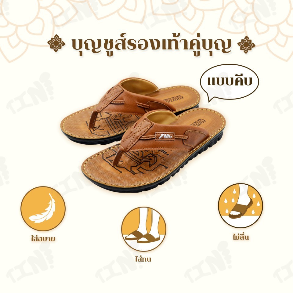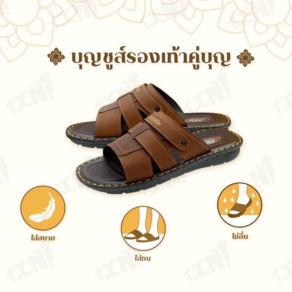 ถูกสุด•ส่งไว•แท้ชัวร์💯บุญชูส์ รองเท้าคู่บุญ รองเท้าแตะถวายพระ หนังเย็บขอบ ไซส์ 39-44 สังฆทานยุคใหม่