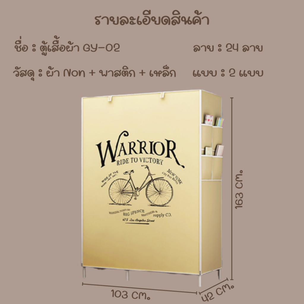 ตู้เสื้อผ้า (รุ่น GY-02) มี 2 แบบ 1 บล็อค 2 บล็อค ตู้ขนาดใหญ่ ผ้ากันน้ำ ชั้นวาง