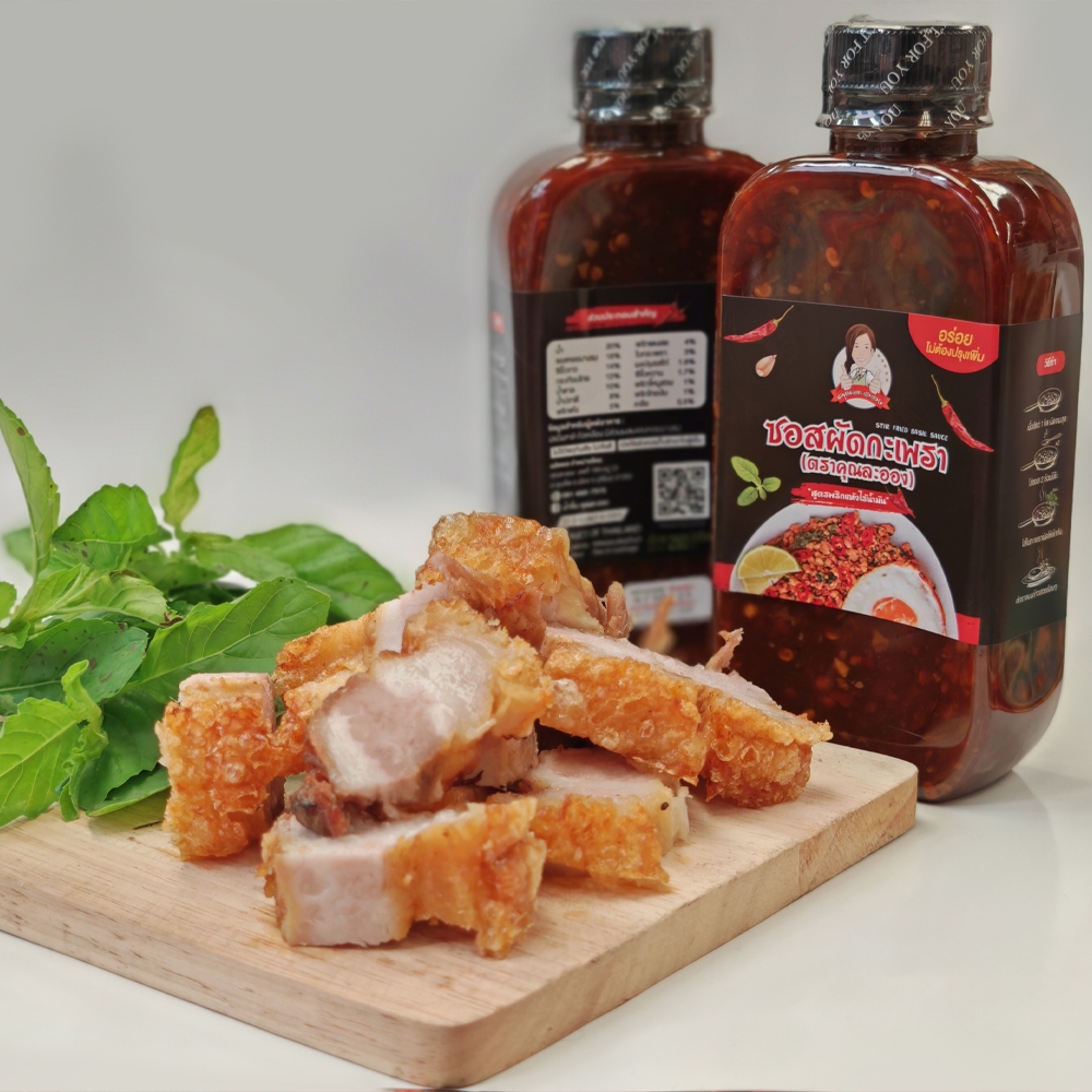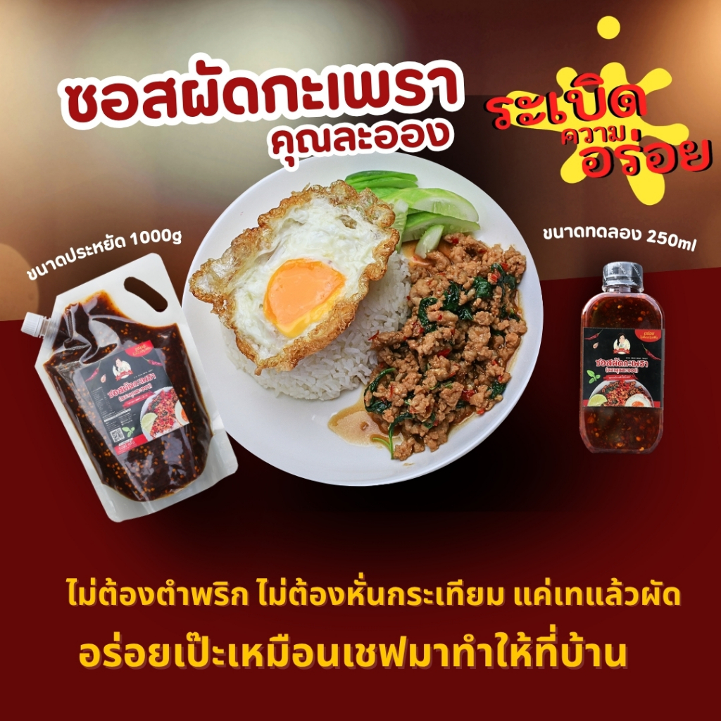 ซอสผัดกะเพรา คุณละออง 250ml สูตรพริกแห้งเข้มข้นไร้น้ำมัน Stir fried basil sauce (Khun Laong's Brand)