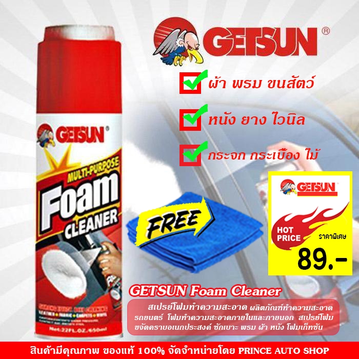 GETSUN Foam Cleaner ผลิตภัณฑ์ทำความสะอาดรถยนตร์อเนกประสงค์ ขจัดคราบ ซักเบาะ พรม ผ้า หนัง (B-5014)โฟมทำความสะอาดภายในและภ