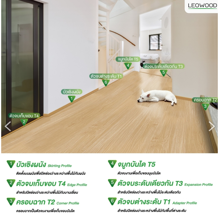 Leowood ตัวจบ คิ้วเล็ก PVC ส่งฟรี! มี 6 สี ขนาด 16 x 16 x 2400 มม. สำหรับพื้นไม้ SPC อุปกรณ์จบงาน
