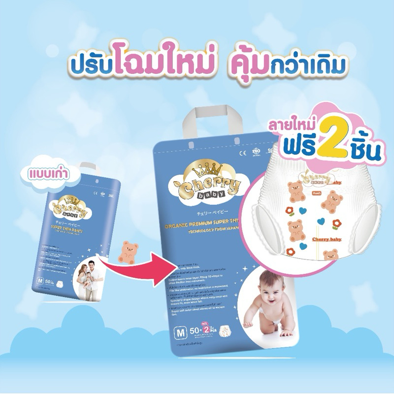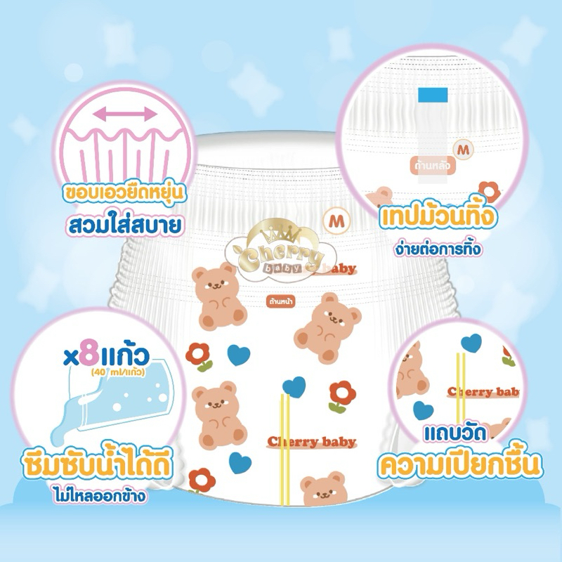 <1ห่อ> 🍒Cherry baby เชอรี่เบบี้ ห่อกลาง Small Organic แบบกางเกง ซึบซับน้ำได้ 8 แก้ว