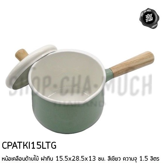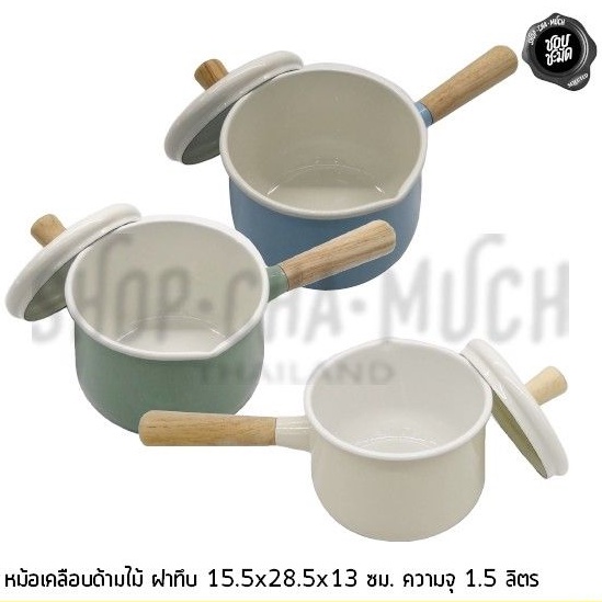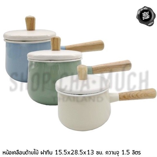 หม้อเคลือบด้ามไม้ฝาทึบ 15.5x28.5x13 ซม. ความจุ 1.5 ลิตร เขียว/ครีม/ฟ้า - 1 ใบ