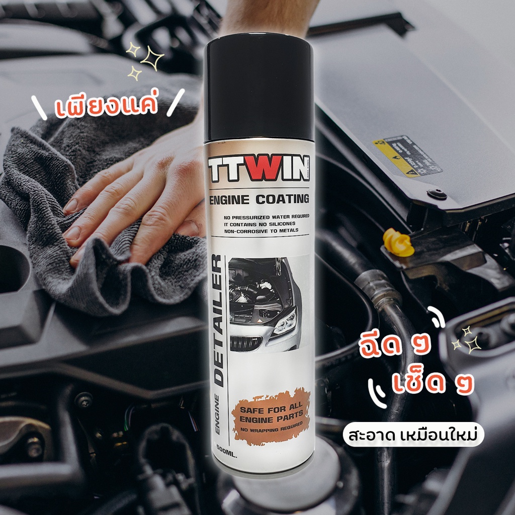 TTWIN ENGINE COATING ล้างเครื่องยนต์ไม่ใช้นํ้า 500 ml เคลือบป้องกันฝุ่นและคราบสกปรก ฟรีผ้าไมโคร 1 ผืน