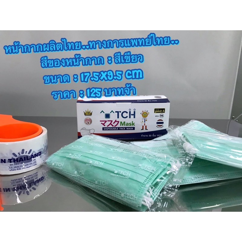 (โปร 1 แถม 1) ^•^TCH หน้ากากอนามัยทางการแพทย์ สีเขียว จำนวน 50 ชิ้น/กล่อง 2กล่อง