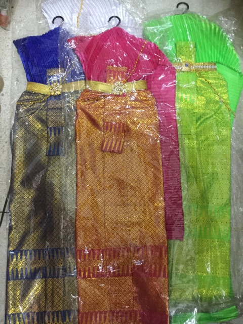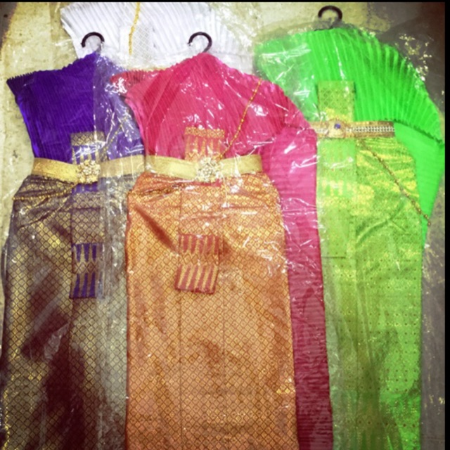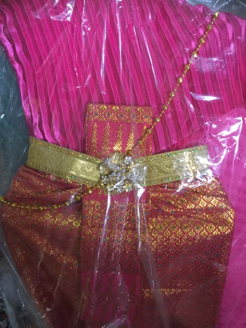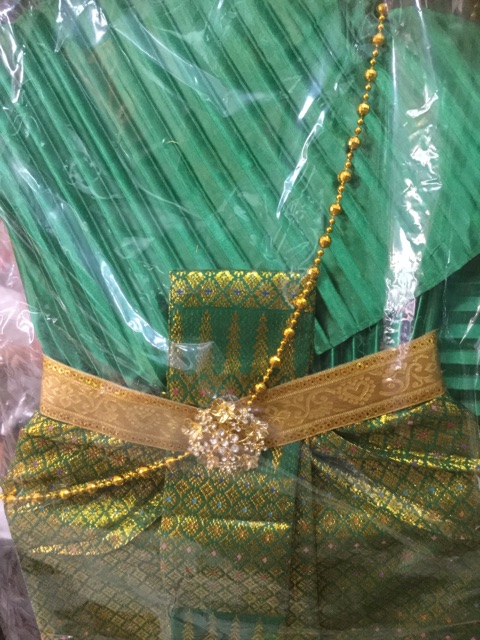 ชุดไทยแก้บนสวย พร้อมเครื่องประดับ ผ้าถุงลายเชิงสีทอง