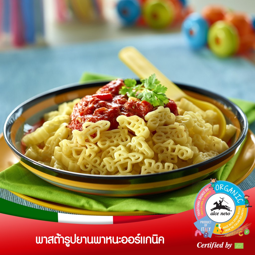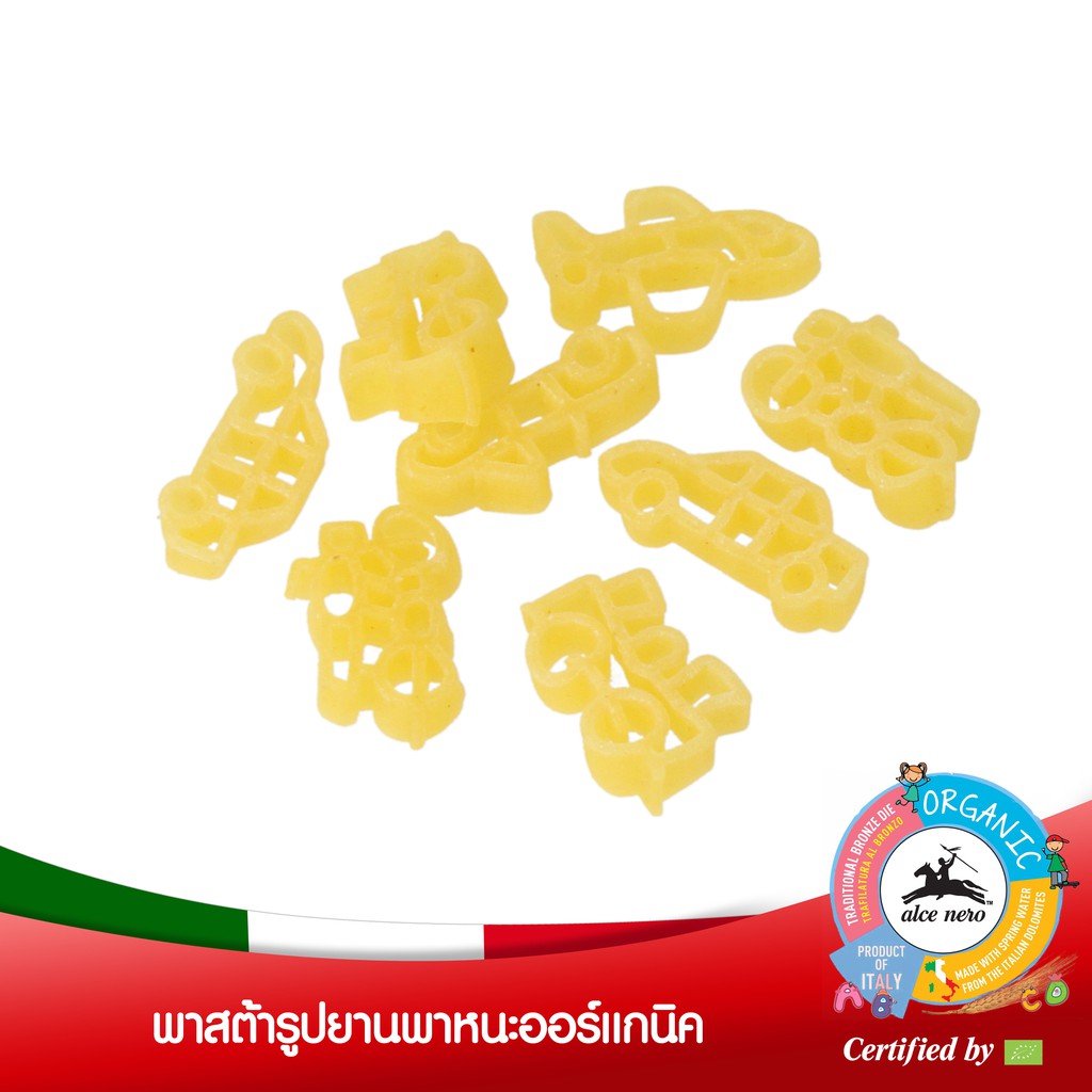 อัลเซ เนโร่ พาสต้าสำหรับเด็ก รูปยานพาหนะ ออร์แกนิค 250 กรัม ALCE NERO DURUM PASTA VEHICLE SHAPE 250 g.
