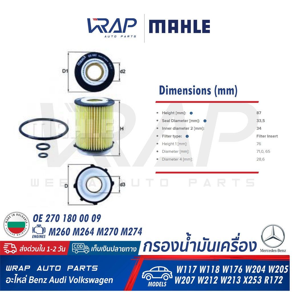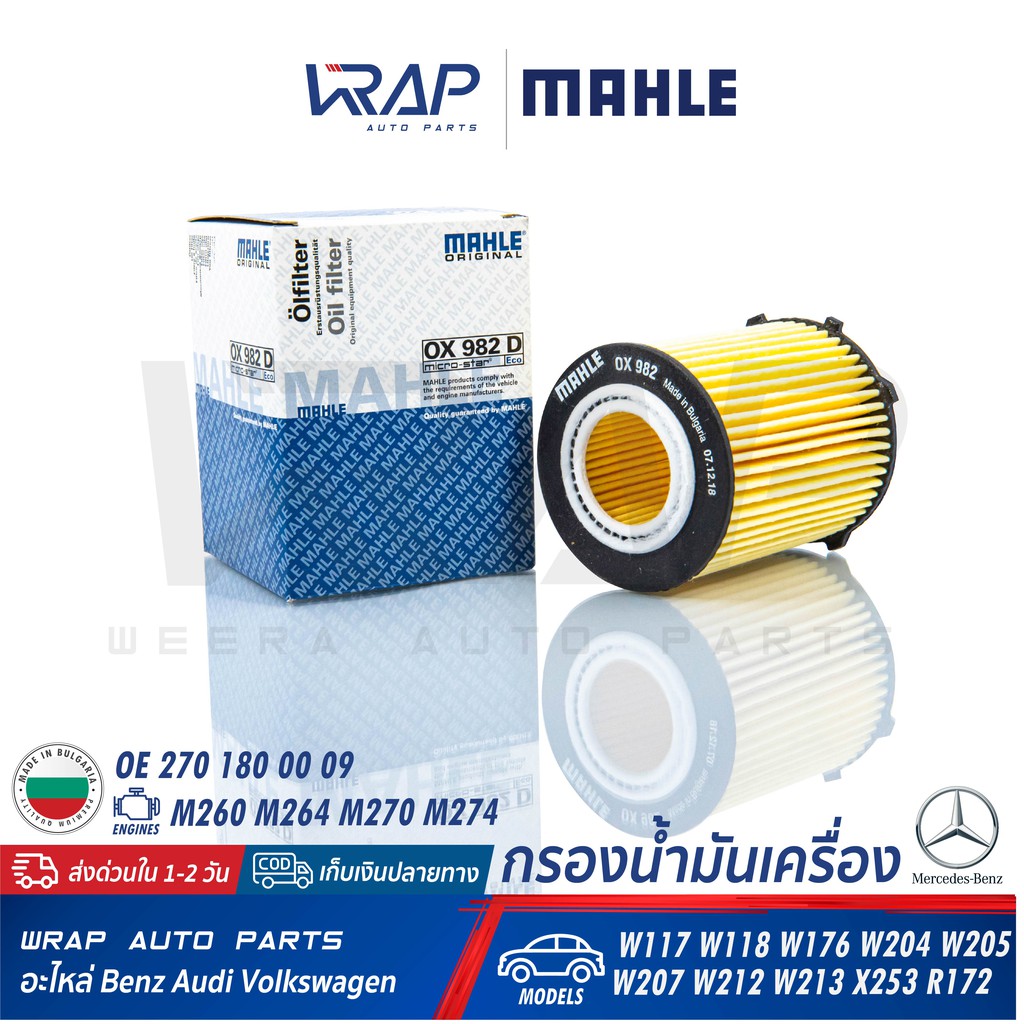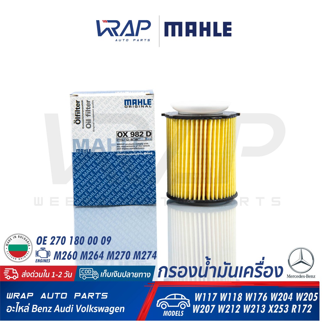 ⭐ BENZ ⭐ ไส้กรองน้ำมันเครื่อง MAHLE OX982D | เบนซ์ เครื่อง M260 M264 M270 M274 รุ่น W176 W177 W204 W213 W246 C117 C257
