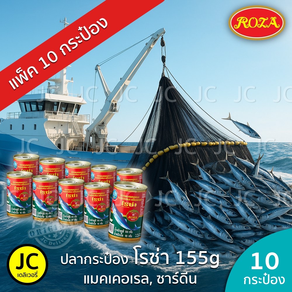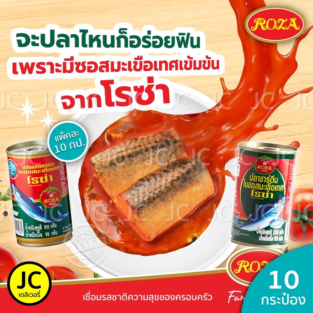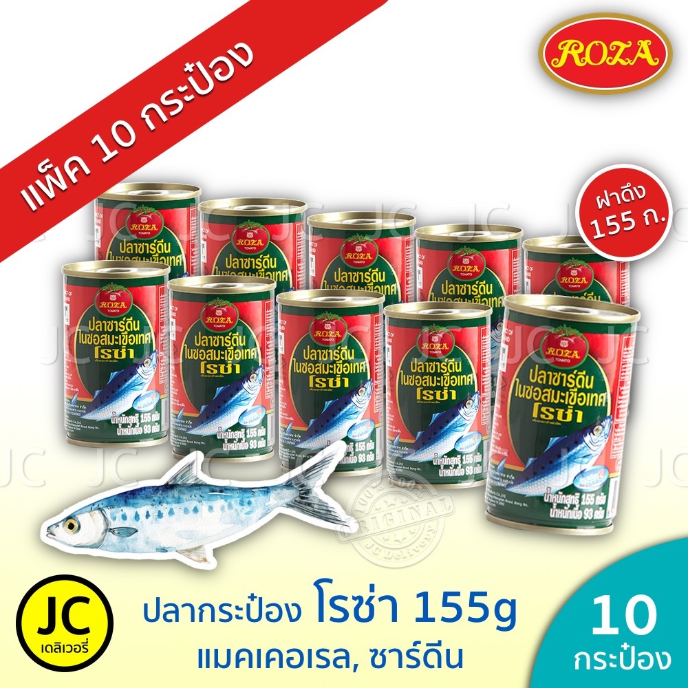 (แพ็ค 10 กระป๋อง)โรซ่า ปลากระป๋อง 155 กรัม แมคเคอเรล ปลา ซาร์ดีน ในซอสมะเขือเทศ ฝาดึง Roza Fish Can